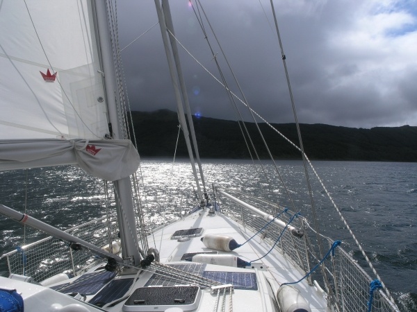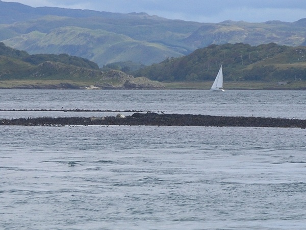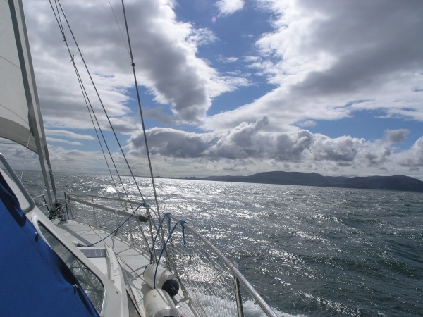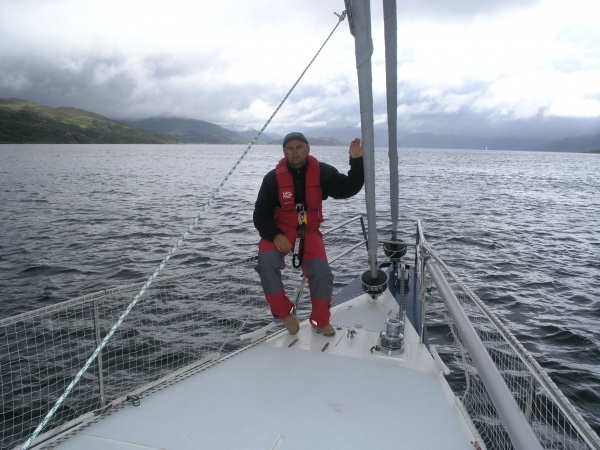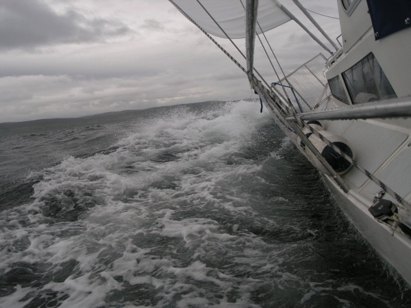Přeplavbu z Orknejských ostrovů do SKOTSKA jsme zahájili projetím vysokých vln, které se zdvíhaly o ostrovní dno. Bylo to naše první seznámení s Atlantikem, kdy se nám přes palubu přehnalo 50cm vody. Samotné skotské pobřeží nás přivítalo poměrně drsným počasím a obzvlášť oblast mezi vnějšími a vnitřními Hebridy byla velmi bouřlivá. Dva dny jsme se probíjeli proti jižnímu větru a vysokým vlnám. Vítr dosahoval v nárazech až 43 uzlů. Po přechodu této tlakové níže se vítr obrátil a již jsme si mohli konečně užít krásný sailing. Skotská příroda je krásná, ale je třeba ji podbarvit sluníčkem a toho jsme měli velmi málo. Severní pobřeží je velmi pusté a neobydlené. Proto také jsme se zde plavili skoro sami a až teprve od ostrova SKYE začalo přibývat jachet. Poprvé jsme se také setkali s odlivem /až 4 m/a následnými proudy, které místy dosahují až 5 uzlů. Proto se nám také podařilo jet s proudem rychlostí 12,5 uzle.