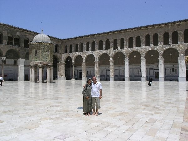 Večer našeho výletu zakončujeme v Damašku v letní restauraci. Při večeři nám tančí břišní tanečnice a sledujeme moderní muzikál o princezně Šeherezádě. Ráno pak začínáme prohlídku DAMAŠKU návštěvou Ulmajovské mešity. Ta nás absolutně uchvátila aje určitě hezčí než vyhlášená Modrá mešita v Istambulu. Začala být budována v 9. století před Kristem a postupně se přestavovala až dodnešní muslimské podoby. Damašek je vůbec považován za nejstarší hlavní město světa, protože první osídlení je zde z roku 2000 před Kristem. Vedle mešity je pak samozřejmě starý trh, kde se kromě jiného prodává místní specialita ručně trhaná zmrzlina.