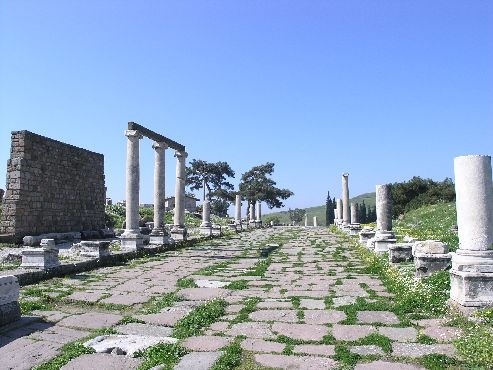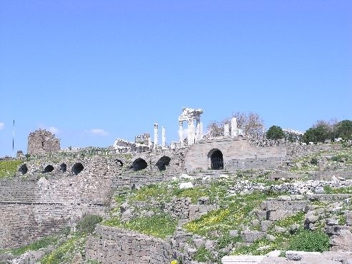 8.4.2008 jsme si udělali výlet do města BERGAMA. Na kopci nad městem stojí zbytky města PERGAMON. To se proslavilo v době antiky svojí velikou knihovnou. Právě zde byl tehdy vynalezen pergamon - vydělaná kůže určená na psaní textů, protože proslulá káhirská knihovna vydala zákaz vývozu papyru do Pergamonu, aby neztratila pověst největší knihovny.