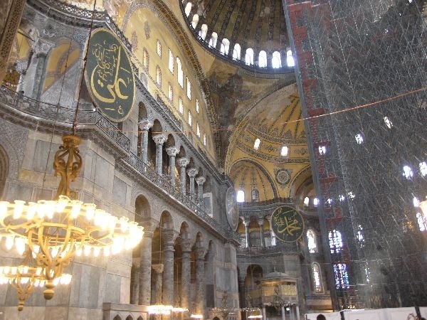 20. dubna 2008 - celý den, již za krásného počasí, jsme se věnovali prohlídce pamětihodností. Začali jsme palácem TOPKAPI, který byl těměř po tři století rezidencí tureckých sultánů.Topkapi není pouze palác, ale soustava dvorců, domů a knihoven, s kouzelným harémem s 400 pokoji. Náš obdiv ovšem patřil kostelu SVATÉ MOUDROSTI /AYA SOFYA/, který postavil v roce 532 císař Justián. Interiér je pokryt dodnes dochovanou úžasnou mozaikou. Poslední zastávkou byla Podzemní cisterna, který schraňovala 100 000 krychl. metrů vody na léto a doby obléhání.