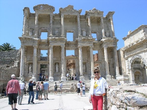 1.května 2008 - probudili jsme se do krásného slunečného rána a mikrobusem se vydali na prohlídku EFESU, kdysi nejvýznamnějšího přístavního a obchodního města v Malé Asii. Arkádská cesta přes EFES byla hlavní cestou do přístavu. Obrovské divadlo, kde se dodnes konají koncerty, pojme až 24 000 lidí. Hadriánův chrám, Celsova knihovna a Mramorová cesta jsou stále v obdivuhodně dobrém stavu. Chrám bohyně plodnosti ARTEMIS patří k sedmi divům světa, ale dnes se z něho nezachovalo těměř nic. Hned vedle Efesu jsme vyjeli na kopec MERYEMANA na místo, kde prý prožila své poslední roky Panna Marie.
