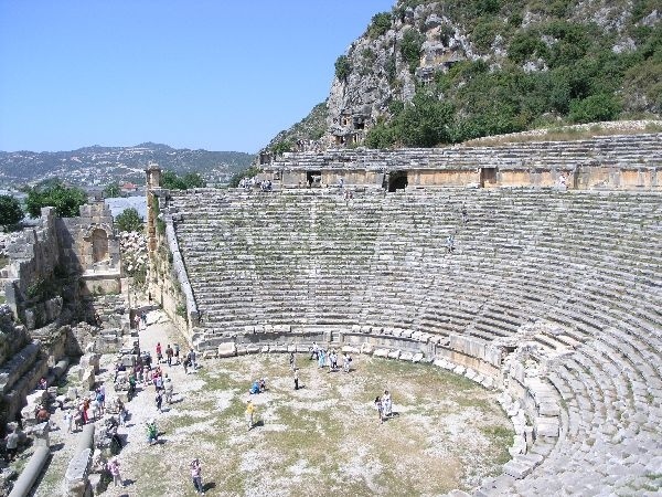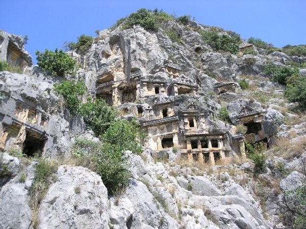 9.5.2008 přeplouváme první krátkou etapu pouze 20 mil do přístavu FINIKE. Zde nás čeká opět bohatý program. večer uvítací koktejl a ráno výlet. Nejdříve navštěvujeme město MYRA s kostelem, ve kterém působil biskup sv. Mikuláš. Podle něj se pak prý zavedla tradice se Santa Klausem či Dědou Mrázem. Takži i Turci si již nárokují původ této tradice. Po této úsměvné návštěvě jsme pak navštívili nedaleké skalní Lyciánské hrobky s římským divadlem. Další zastávkou byly trosky města ARYKANDA, které bylo vybudováno vysoko v horách a pohled do údolí je fascinující. Přiznáme se, že jsme vůbec netušili kolik nádherných historických míst je možno v Turecku vidět.
