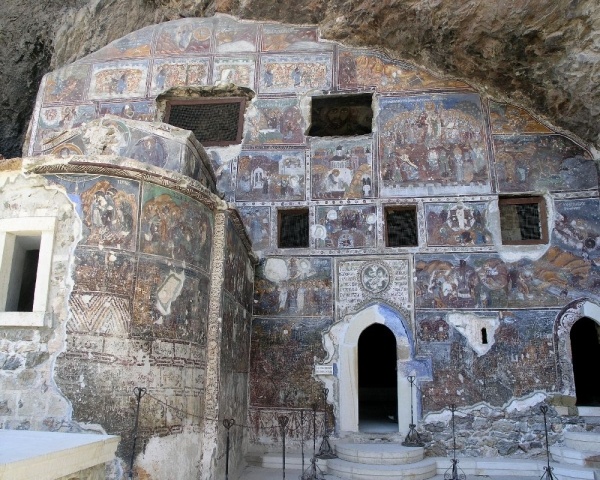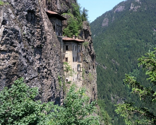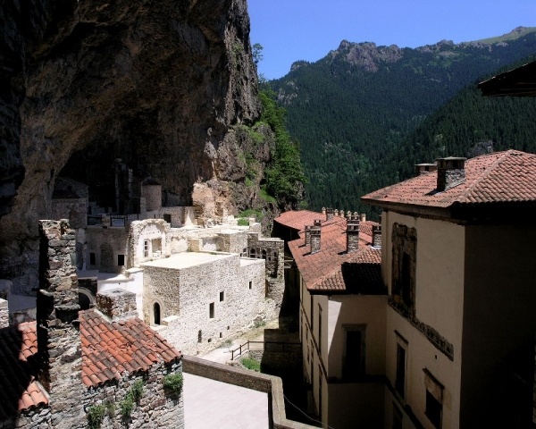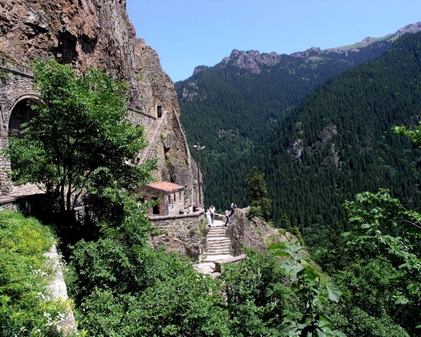 23. června - v pohoří PONTUS asi 50 km jižně od TRABZONU se nachází mnoho kláštěrů a kostelů. My jsme navštívili jeden z nejznámějších v přírodní rezervaci ALTINDERE v nebeských výškách: skalní klášter SUMELA. Leží ve výšce 300 m nad horským údolím a je zabudovám do skalní stěny. Byl založen již ve 4.st., kdy zde podle pověsti mniši ukryli ve skalní jeskyni posvátnou ikonu Matky Boží. Poslední řečtí mniši museli klášter opustit v roce 1923, když došlo k hromadnému vystěhování Řeků z Turecka.