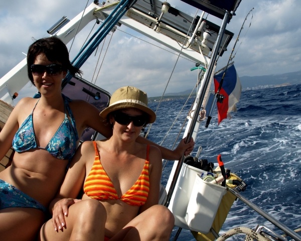 Malorka nás přivítala krásným počasím, ale slabým větrem. Pomalu tedy proplouváme její výhodní pobřeží a plujeme doslova ze zátoky do zátoky. Postupně se dostaneme až do Palmy, kde jsme nalodili naší milou rodinnou posádku. Hlavně naše vnoučata měla obrovský zážitek ze života na palubě. Bylo to pro nás příjemné zpestření jachtařského života. Další týden za námi přijel David s Markétou a hned po nich Hanka s Luckou. Celé 3 týdny jsme si užívali návštěv a bylo nám veselo.