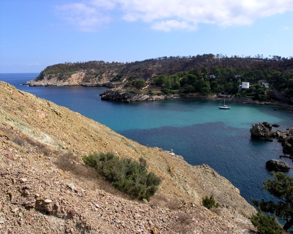 13. září připlouváme na IBIZU a kotvíme na severním pobřeží v zátoce PORTIMAX, která je ukázkou turismu. Odtud rychle mizíme a nalézáme romantickou zátoku XARRACA, kde stojíme sami. Obkolopují nás vysoké útesy s ohořelými stromy po rozsáhlém požáru, který tu řádil v červenci. Ačkoliv se nám nechce pokračujeme kolem západního pobřeží do Port de Sant Miguel. Ale opět krásnou zátoku hizdí velkokapacitní hotely. Jediné co nás zlákalo byla přírodní pirátská jeskyně "Cova de Can Marca", která byla přírodním skladištěm. Je stará přibližně 100 tis. let. Prosakuje zde voda, vyrostly ze stropu stalaktity a ze dna stalagmity. Prohlídka byla zpestřena vodopádem a barevnou her světel. Večer jsme se vydali vnitrozemi. Zde leží vesnička "Sant Miguel de Balansat", kde jsme se podívali na folklorní představení s ibizskou hudbou a tanci.