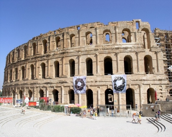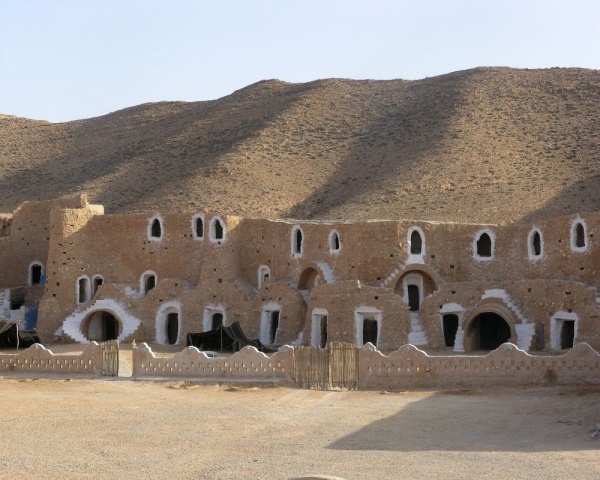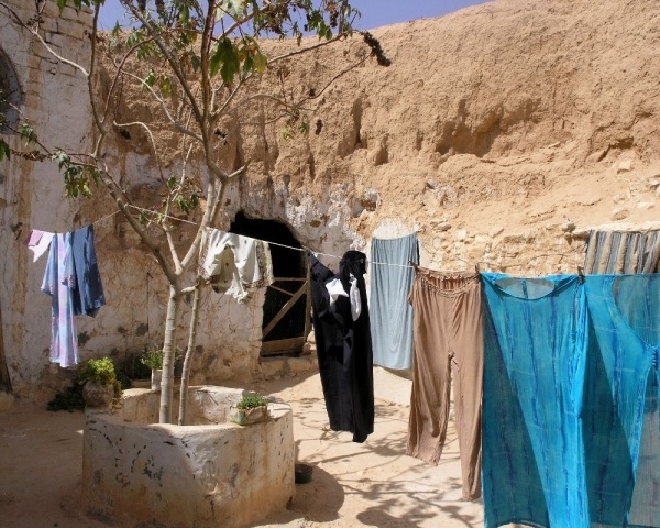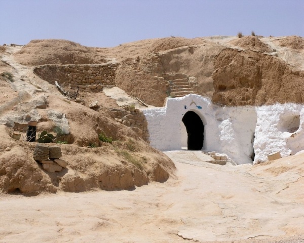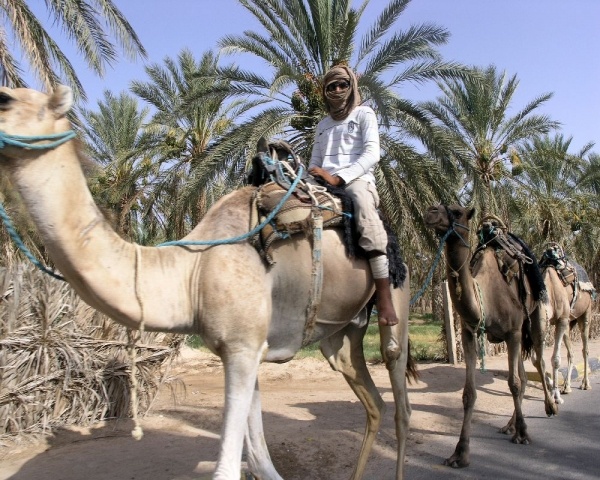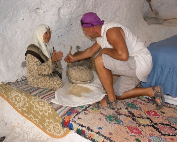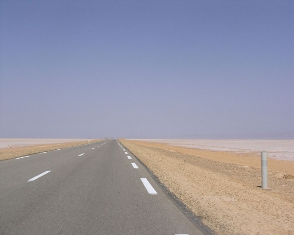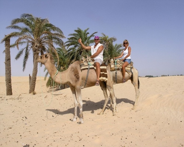 Monastir leží ve střední části Tuniska a my jsme zatoužili podívat se ještě jižněji. Bohužel lodí by to bylo obtížné, nejsou zde přístavy a vody kolem pobřeží jsou mělké a nelze zde kotvit. Půjčili jsme si na dva dny auto a silnicí, kterou lemují kaktusy /opuncie/ jedem na jih. Po hodině jízdy je už z dálky vidět amfiteátr římské osady v obci EL DŽEM. Dnes se zde místo gladiátorských soubojů pořádají večery s programy klasické hudby. Hlavním jihotuniským cílem všech turistů, samozřejmě tedy i naším, je vesnice MATMATA. Berberské kmeny, které byly kdysi bojovnými Araby zatlačeny do této nehostinné horské krajiny, si zde začaly hloubit do země trychtýřovité obydlí. Rádi jsme se nechali do jedné domácnosti pozvat, protože venku bylo vedro /45 st./ a v jejich místnostech bylo příjemně chladně. Ve zdejší oblasti natáčel S.Spielberg některé scény z filmu "Hvězdné války." Sehnali jsme zde velmi levný, ale pěkný hotel s bazeném a zůstali do rána. Další den nás čekala cesta palmovými oázami směrem k alžírským hranicím. DOUZ je malé město v oáze na kraji saharského písečného moře. Okamžitě nás zde odchytil poháněč velbloudů a tak jsme nasedli a dokolébali se podívat na písečné duny. Na kraji velkého solného jezera je oáza KEBILI, kde rostou datlové palmy nejlepší kvality na obrovské rozloze. Přejezd přes vyschlou solnou pánev Šott-al Džaríd byl zvláštní. V dáli na obzoru se nám zbjevila vodní plocha, která náhle zmizela. Nebyli jsme přehrátí ze sluníčka, jak jsme si mysleli, ale byla to zde známá legendární fata morgána. Na konci jezera, kde jsou úžasné scenérie horských oáz nám docházel benzín. Natankovali jsme pár litrů, ale nedojeli moc daleko. Auto začlo zlobit, nechtělo jet.