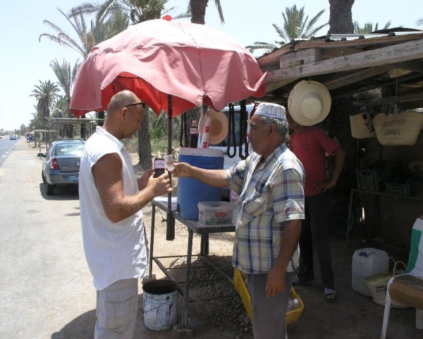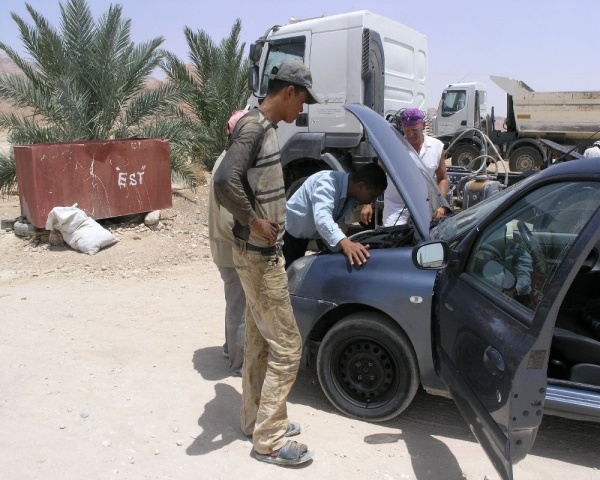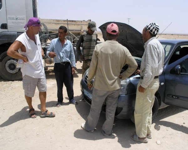 Doskákali jsme do nejbližší vesnice TAMERZA. V restauraci jsme sehnali opraváře, dali si oběd /kuskus s kuřecím masem/. Čekání jsme si zpestřili prohlídkou kaňonu s vodopádem. Kolem 6 hod. nám auto vrátili s tím, že jsme vzali nekvalitní benzín. Zaplatili jsme 200 dinárů /oškubali nás jak mohli/, ale rádi jsme se vraceli do Monastiru. Vydařený výlet až na ten závěr !!! Lidé v těchto oblastech jižního Tuniska a hlavně v oblastech, kde začíná Sahara mají tvrdý život. Nejen, že se musí vyrovnat s těžkými klimatickými podmínkami, ale není zde práce a musí se jakýmkoliv způsobem uživit sami.
