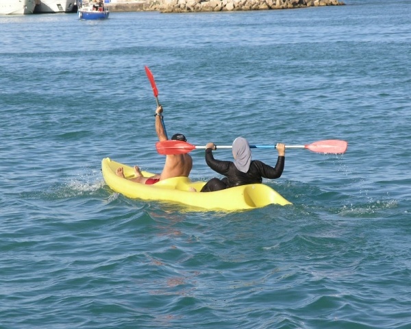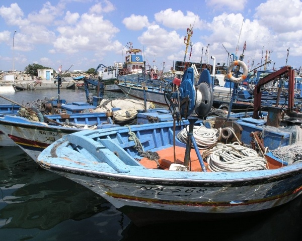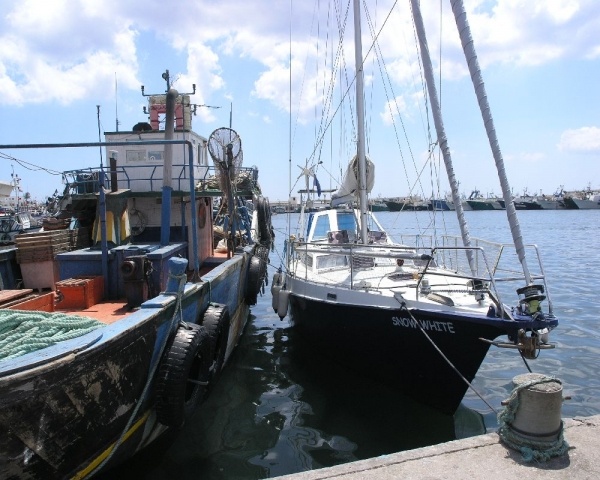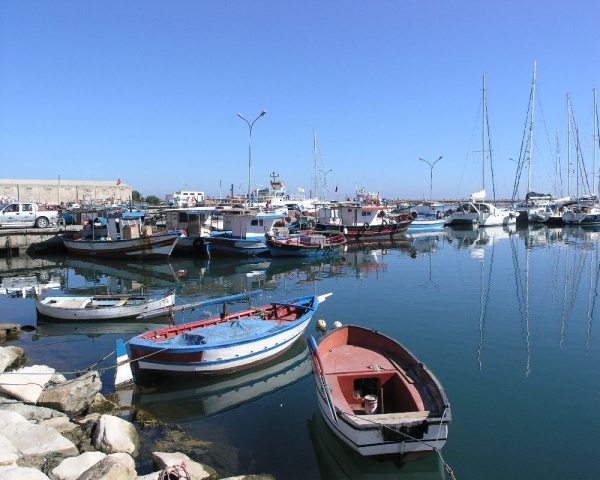 26. července vyplouváme směrem do hlavního města Tunisu. Bohužel silný severozápadní vítr a velké vlny nás zahnaly po 55 n.m. do rybářského přístavu "KELIBIA" na poloostrově "CAP BON." Díky větru se malinko ochladilo z 41 st. na 31 st. a tak jsme se odvážili vyndat kola a projet si poloostrov. Severně od přístavu /dle směrovek napsaných arabsky jsme zabloudili/ jsme našli staré fénické město rybářů a barvířů "KERKOUANE." Jeho rozvaliny /základní zdi, lázně i označení ulic/ jsou ve výborném stavu. Samotné Kelibii, která není turistická, dominuje pevnost ležící 150 m nad mořem. Je z ní krásná podívaná na rybářský přístav a okolní pláže.