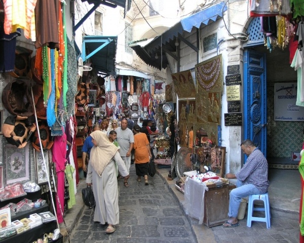 TUNIS hlavní město Tuniska tvoří Medína, evropské čtvrtě postavené za francouzského protektorátu a neustále se rozvíjející moderní mìsto. Do MEDÍNY jsme vešli z velkolepé /moderní/ avenue Habib Bourguiba." Za ní už jsme bloudili úzkými uličkami s obchůdky se starožitnostmi, malými vetešnictvími, parfémy, koření, koberci atd. Zaujal nás trh "EL BERKA", někdejší místo obchodu s otroky. Na malém prostranství se ke sloupkům řetězy přivazovali otroci určeni k prodeji. Dnes je zde labyrint zlatnických krámků. Z Mediny jsme se vymotali na náměstí "Place de la Kasbah", kde je sídlo ministerského předsedy a naproti němu je ministerstvo financí. Jako třešninku na dortu jsme si nemohli nechat ujít Centrální trh s ovocem, masem, mléčnými výrobky a rybí trh, který jsme poznali dle typického pachu. Tunis je město dvou tváří. Na jedné straně velká bída a na druhé přepych a luxus.
