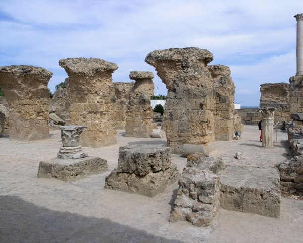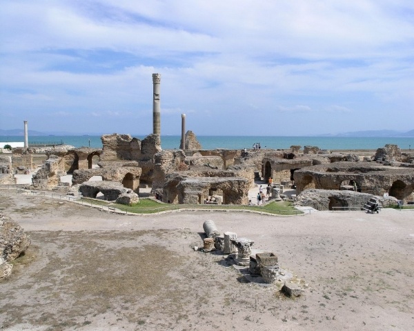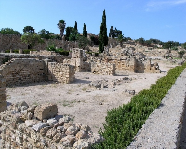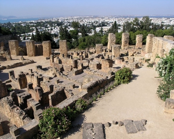 Severně od Tunisu leží "KARTÁGO" město, které se vepsalo do dějin lidstva. A jak vzniklo? Podle pověsti prodal berberský král princezně Elisse pozemek, jehož rozměry měly být vyznačeny volskou kůží. Elissa nechala kůži rozřezat na tenké proužky a obehnala jimi pahorek "BYRSA", na kterém r. 814 př.Kristem založila město "KART HADAŠT." V roce 146 př.Kristem přišli Římané a město srovnali se zemí a vystavělé nové, blahobytné město, které nazvali "KARTÁGO." Dnes na pahorku Byrsa stojí bývalá katedrála sv. Ludvíka z konce 19 st. a muzeum. Na svahu jsou vykopávky Hanibalovy čtvrti. Přímo u moře leží třetí největší římské lázně Antonia PIA. Maketa před vstupem svědčí o komfortu, v kterém Římané v té době žili. Dnes je Kartágo půvabnou vilovou čtvrtí s prezidentskou rezidencí. V roce 1979 bylo zapsáno do seznamu UNESCO.