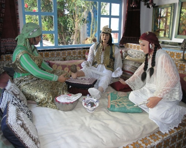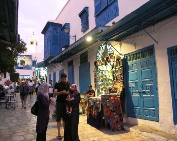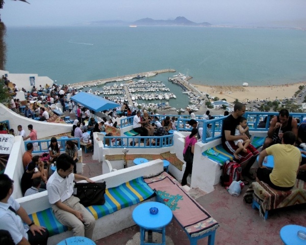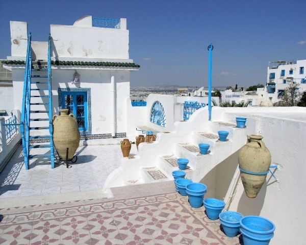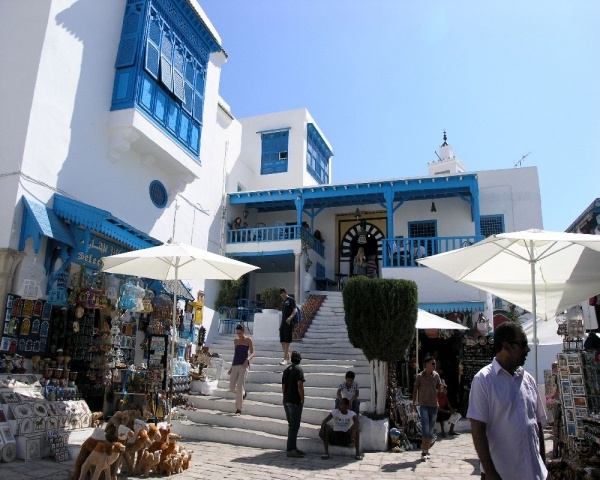 V tuniském zálivu je na kopci malebné městečko "SIDI BOU SAID" s výhledem na přístav, kde stojíme s naší Sněhurkou. Městečko je pojmenováno po muslimském světci, který zde žil v 12 st. V 17 st. si ho oblíbili královští vezírové a začali zde stavět honosné rezidence. Do jedné z nich je povolený vstup. Je to dům rodiny "ANABI." Jeho andaluská výzdoba, starožitný nábytek, figuríny oděné do tradičních krojù nám příblížily zdejší život v minulých letech. Další nádherný palác si zde nechal postavit bohatý německý bankéř a nazvala jej "En Nejma Ez Zahra" /Zářicí hvězda/. Dnes slouží jako muezum. Natáčely se zde záběry z filmu "Angelika a Sultán." V uličkách městečka se nachází spousta obchůdků se suvenýry, uměleckými předměty a obrazy. Ale hlavně zde všude voní jasmin, který je považován za tuniskou národní květinu. Nakonec jsme si sedli na terasu kavárničky, dali si máthový čaj a měli pocit, že se zde zastavil čas !!!