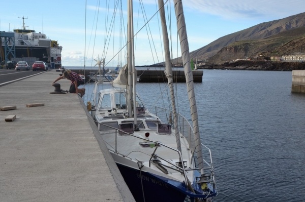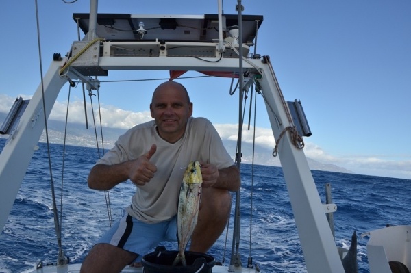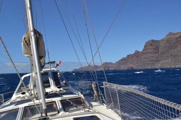 Při přeplavbě z La Palmy na ostrov La Gomera se nám konečně podařilo chytit první rybu- zlatou dorádu. Zabít nám ji bylo líto, ale večeře z ní byla výborná. Ostrov La Gomera má zase úplný jiný ráz krajiny než ostatní ostrovy. Je obehnaná vysokými skalními stěnami a silnice se kroutí podél stěn útesů vzhůru a příkrými stržemi dolů. Národní park de GARAJONAY je zelená džungle ve středu ostrova. Na vrcholu ostrova se chladné atlanské pasáty srážejí s teplými vánky, díky čemuž je tu neustále mlha. Stromy jsou porostlé mechy a lišejníky. Na jižní straně ostrova se sjíždí k moři hlubokou zelenou roklí tzv. "Údolí velkého krále." Terasovité svahy jsou porostlé palmami a pěstují se na nich banány.