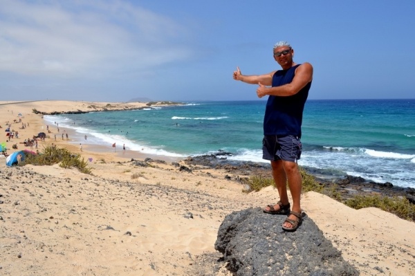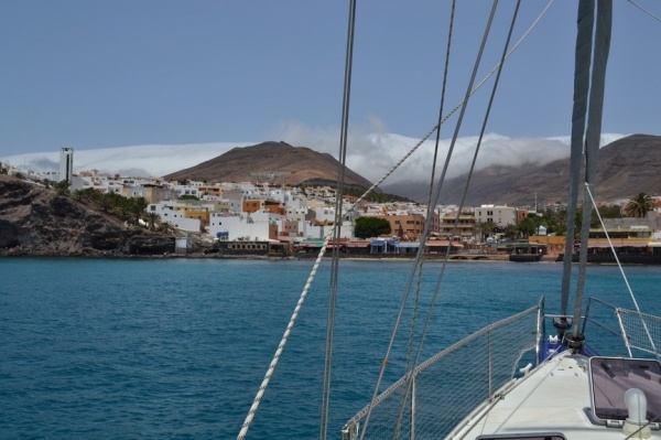 9. srpna za silného středobočního větru plachtíme na druhý největší ostrov, který je nejblíže africkému pobřeží "FUERTEVENTURU" /tzn.silný vítr/. A ten tu opravdu ukazuje svoji sílu. Kolem ostrova neustále fučí rychlostí 35 uzlů. Kotvíme na jižním pobřeží hlavního turistického letoviska "MORRO JABLE." Před námi se line nekonečná pláž a nad městem se valí mlha jako mléko. Vedle přístavu je záchranná stanice-líheň pro želvičky Karety obecné. Vejce sem vozí z želví kolonie na Kapverdách. V líhni zůstanou až do jednoho roku věku a pak jsou puštěny do oceánu.