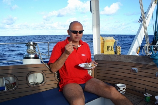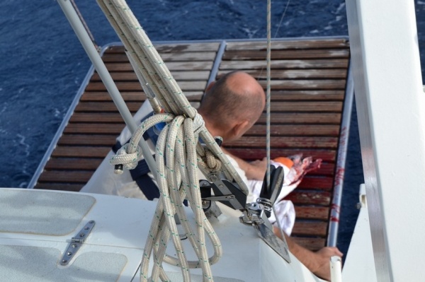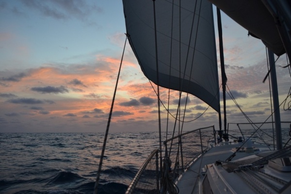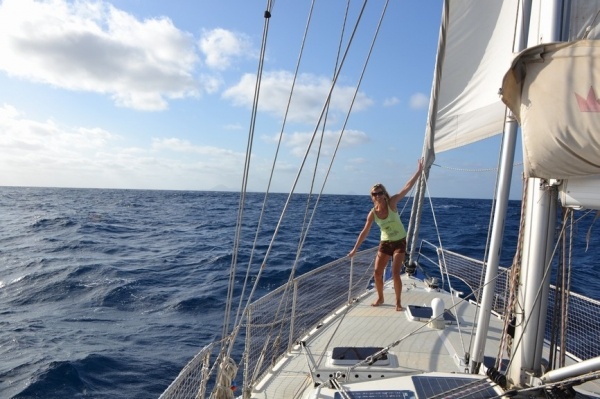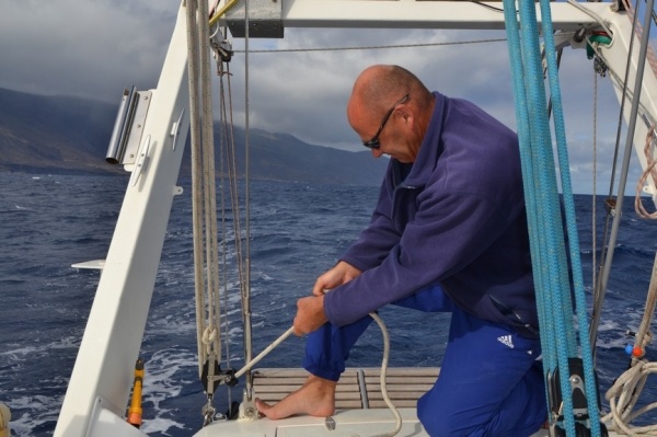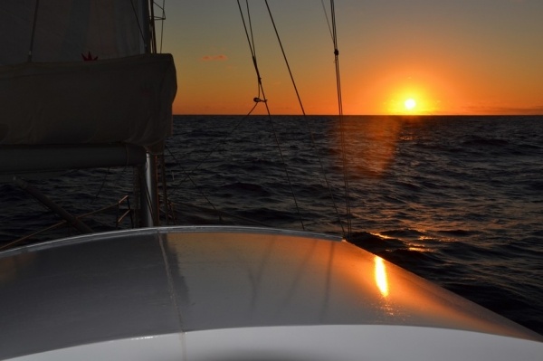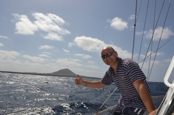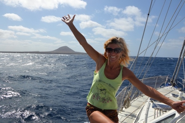 Z kanárského ostrova EL Hierro na Kapverdy vyplouváme 17. listopadu odpoledne. Předpověď počasí a hlavně větru je příznivá na celých 6 dnů plavby. GPS nám ukazuje 680 n.m. na první z kapverdských ostrovů. Vítr fouká zadní o síle 10-15 uzlů, což není úplně ideální. Sněhurka se kymácí ze strany na stranu a nedá se spát. Vítr nás proto donutí křižovat. Druhý večer nás navštívilo hejno malinkých delfínů, což bylo milé zpříjemnění cesty. Plavba probíhala skoro každý den stejně, přes den si čteme a večer se díváme na DVD. Poslední dva dny vítr zesílil na 20-25 uzlů a vlny narostly na 3-4 m. V těchto vlnách jsme chytili 10 kg tuňáka. Byl to boj mezi rybou a kapitánem. Nakonec to kapitán zvládl a tuňáka budeme jíst dalších 6 dnů. 23. listopadu nás probouzí sluníčko a my vidíme zemi. Kotvu spouštíme ve 14. hodin u ostrova SAL. Oba jsme unaveni, nevyspalí, ale šťastni, že to máme za sebou. Celkem jsme upluli 825 n.m.