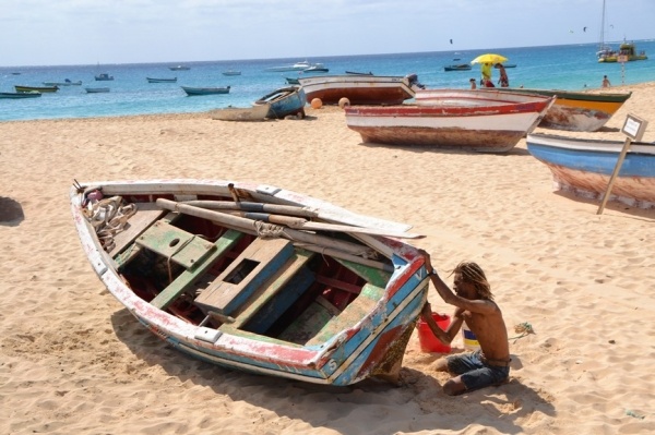 Ostrov SAL, kde kotvíme v rybářském přístavu PALMEIRA, je nejstarším, vulkanickým ostrovem. Panuje zde velice klidná atmosféra. Místní černošští obyvatelé nikam nechvátají a nápisy "NO STRESS" zcela vystihují jejich život. Na přihlášení na policii jsme s úsměvem čekali 3,5 hodiny - prostě klídek!!! Místním busem jsme se zajeli podívat do hlavního města ESPARGOS a na jižní část ostrova, kde je překrásná pláž se zlatým pískem Santa Maria.