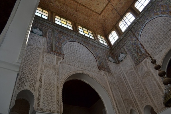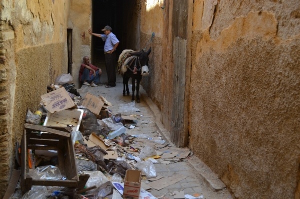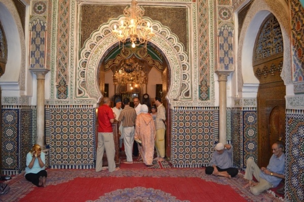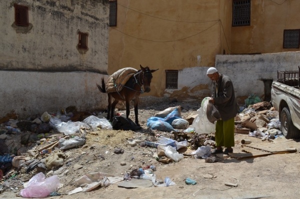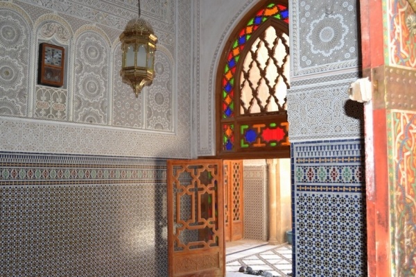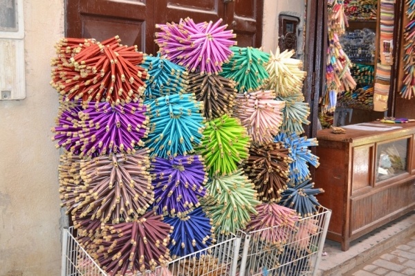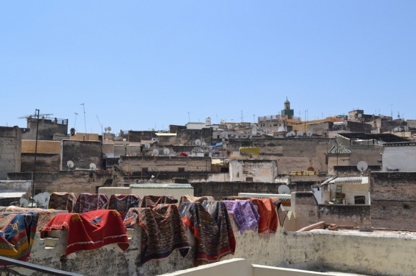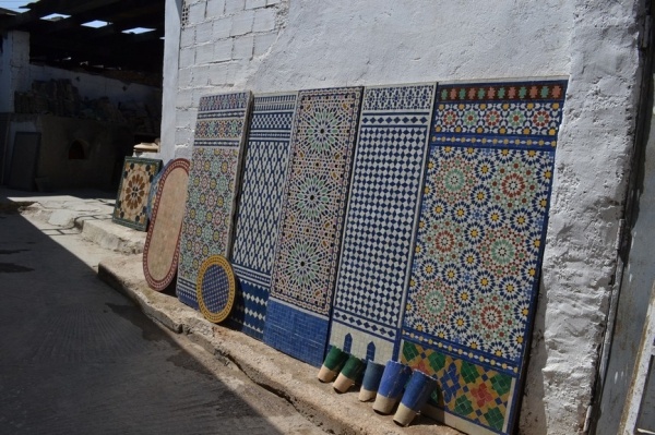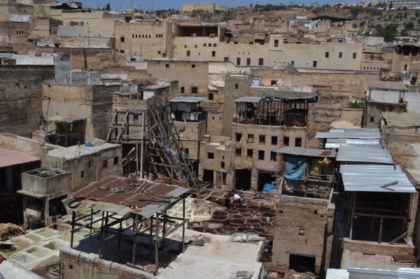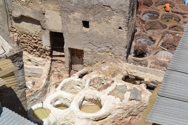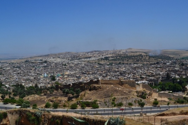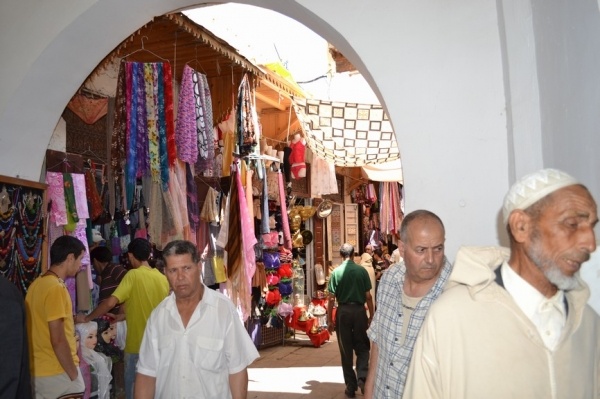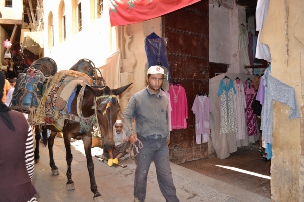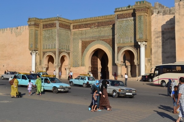 FÉZ, jedno z nejstarších královských měst založil sultán Moulay Idriss a je klenotem španělsko-maurské architektury. Hned po příjezdu do města jsme si dle informací raději najali průvodce. Jeli jsme se podívat do dílny,kde se ručně vyrábí keramika a za pomocí zručných dělníků vyťukává kladivem mozaika. Do Mediny, která se honosí 5 tis.úzkými ulicemi, jsme vstoupili jednou z postranních uliček. Průvodce nás vtáhl do života místních obyvatel, kteří proudí sem a tam. Většinu uliček zastřešují látky nebo dřevěné rošty a jediným dopravním prostředkem na přepravu zboží jsou oslíci. Cestami, které se rozvětvovaly na všechny strany jsme prvně došli k historickým památkám jako např. Karaouinská mešita a zároveň univerzita, jedna z nejstarších na světě, oslňuje svojí bohatou výzdobou z keramiky. Internátní škola koránu se honosí španělsko- maurskou architekturou. Proplouvali jsme uličkami, kde prodejci nabízejí své zboží /cukrovinky,koření, látky,koberce, truhlářské, kovářské výrobky a další/. V ulici barvířů a koželuhů jsme si připadali jak ve středověku. Polonazí chlapci šlapou v kameninových nádržích naplněných chemikáliemi nebo barvivy a potom páchnoucí kůže nakládají na osly, aby je odvezli do dílen na zpracování. Dělají to za pár mizerných dirhamů a ještě riskují své zdraví. Je to hodně smutná realita. Uličkami, které vznikají, zanikají, někdy končí v domech a hlavně jsou plné odpadků a špíny jsme se díky průvodci dostali ven. Sami bychom tady bloudili asi celý den. Typické marocké jídlo kuskus se zeleninou a kuřecím masem, jsme si dali v fézské restauraci ještě v Medíně. Pak nás ještě čekal nádherný výhled z pevnosti nad městem a pokračovali jsme do dalšího města.