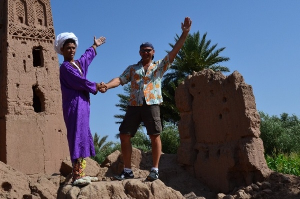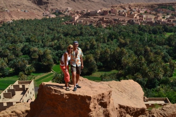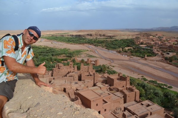 Autobusem jsme dojeli do nově postaveného města na okraji Sahary, OUZAZARTE. Hned na nádraží nás odchytil průvodce /mladý Berber jménem Azís/, který nám nabídl 2 denní výlet džípem. Hned večer nás provedl městem a ukázal místa, která využívají filmaři k nátačení. Např. některé filmové záběry z filmu Gladiátor byly natočeny ve vesnici AIT BANHADDOU, které dominuje nádherné opevnění /kasba/.