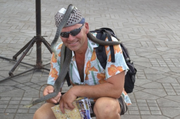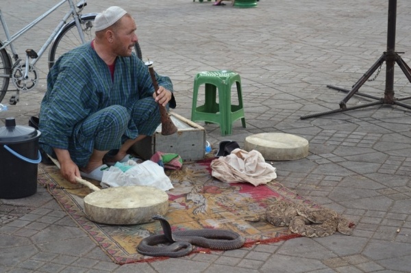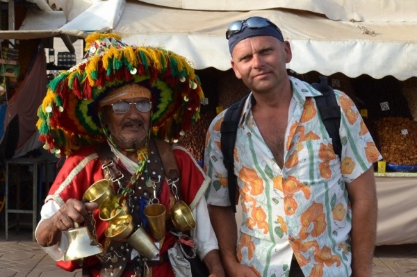 Maroko, nepoznanou exotickou zemi, jsme se rozhodli procestovat celou. Hlavně poznat její krajinu, architekturu a život Arabů, Afričanů, Berberů a Tuaregů. Všechny spojuje islámské náboženství. A taky v málokteré zemi se mísí vysoké pohoří s africkou pouští. Cestování hromadnými dopravními prostředky je jak finančně, tak časově výhodné. Vzdálenosti jsou zde velké a autem by to bylo hodně náročné. Z Rabatu jsme jeli vlakem do jednoho z nejfantastičtějších měst MARAKÉŠE, která je více africká,pouštní a berberská. Po 6 hodinách jízdy jsme vystoupili na hlavním nádraží, kde nás omráčilo velké vedro. Teploměr ukazoval 52 st., což není nic pro nás Evropany. Přes medinu jsme došli ke KOTUBIJSKÉ mešitě, jejíž minaret je 70 m vysoký. Kousek odtud jsme objevili hotel, kde jsem se ubytovali za rozumnou cenu a hlavně se schovali před odpoledním žárem. Navečer jsme prošli pravý marocký trh /súk/, prohlédli jak se barví kůže a vrátili se na rozlehlé náměstí DJEMAA el Fna, kde jsem viděli skutečný výkvět pouliční zábavy. Místní kuchaři vaří marocké speciality, můžete si dát pravý pomerančový džus nebo od muslimské ženy se nechat pomalovat henou. My jsme nakonec vše sledovali z terasy kavárny při skleničce výborného mátového čaje. Byla to nejpůsobivější podívaná pod širým nebem.