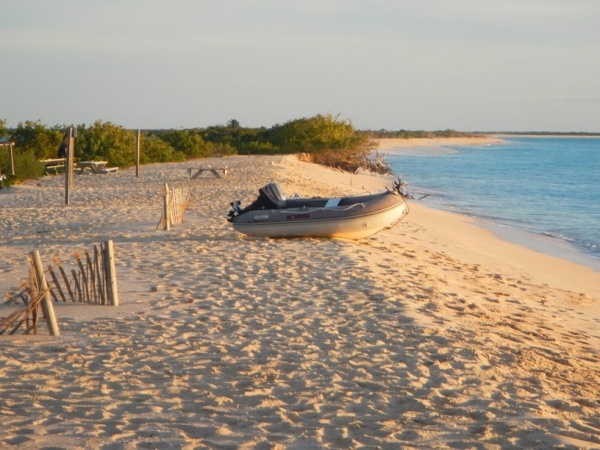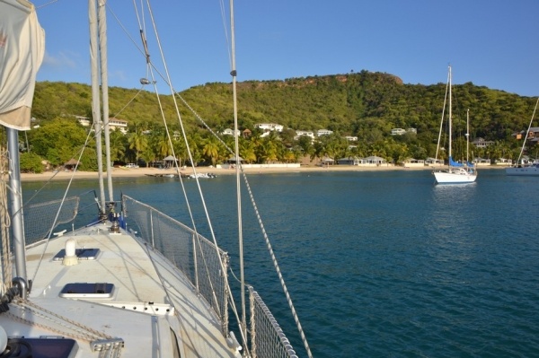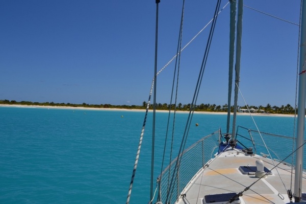 Codrington je jediné město na Barbudě, kde se potřebuji odlásit. Leží však v centru ostrova na břehu mělké laguny, kam se nedá doplout s jachtou. Zvolil jsem tedy zdánlivě jednoduchou variantu a sice zakotvil u pláže oddělující tuto lagunu. Jezdí zde vodní taxi do města, když však chtěl onen taxikář za převoz 40 USD, tak jsem jej poslal kamsi a rozhodl se doplout do města na vlastním člunu. Přetáhnout však 70 kg těžký člun přez písečnou dunu nebylo vůbec jednoduché a stálo mě to hodně sil. Vrcholem pak bylo, že jsem přišel na celnici pozdě a byla již zavřená. Druhý den jsem si tedy vše zopakoval.
