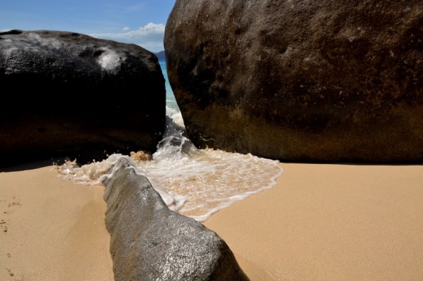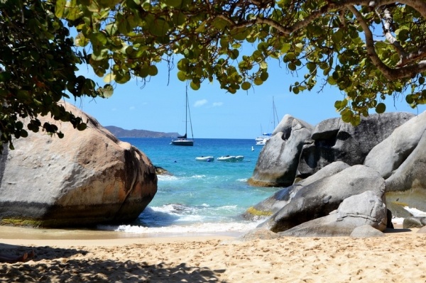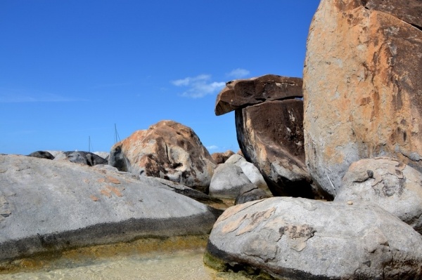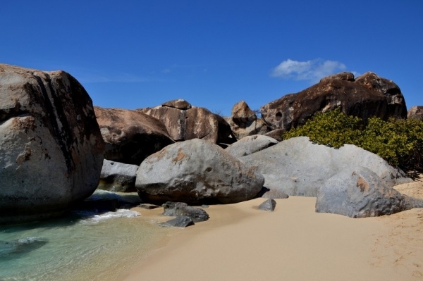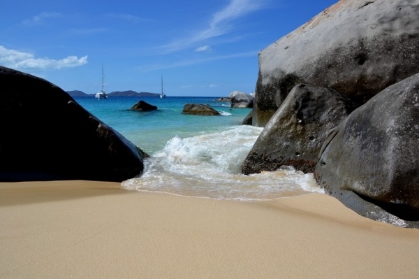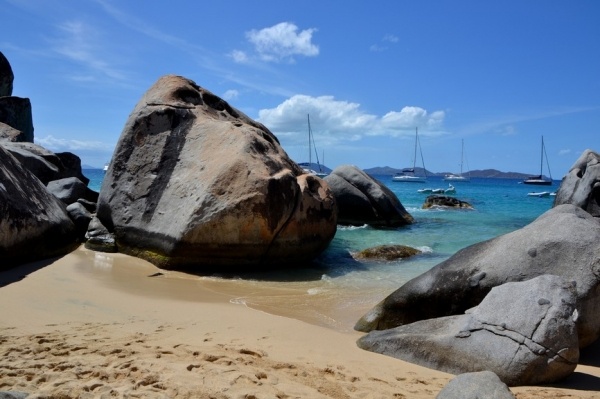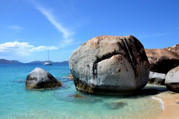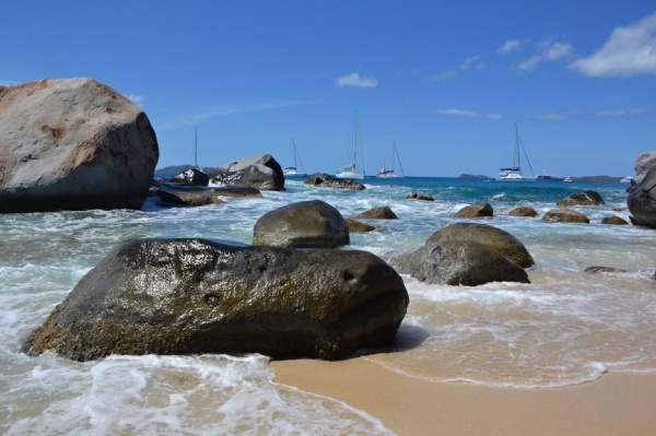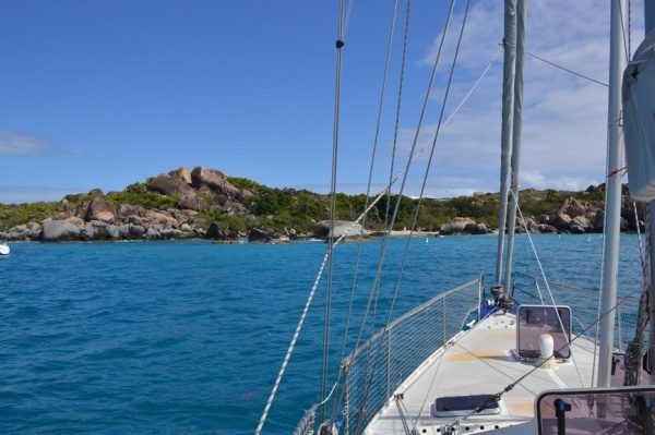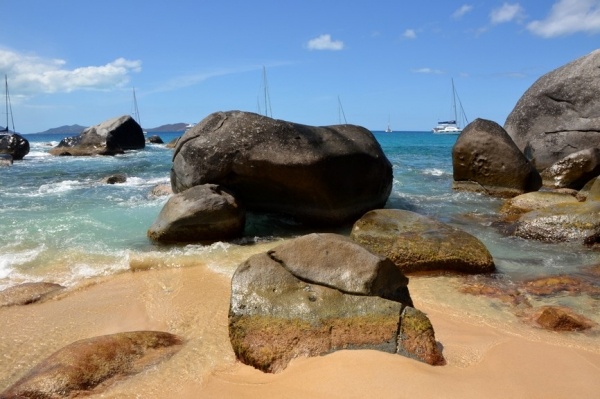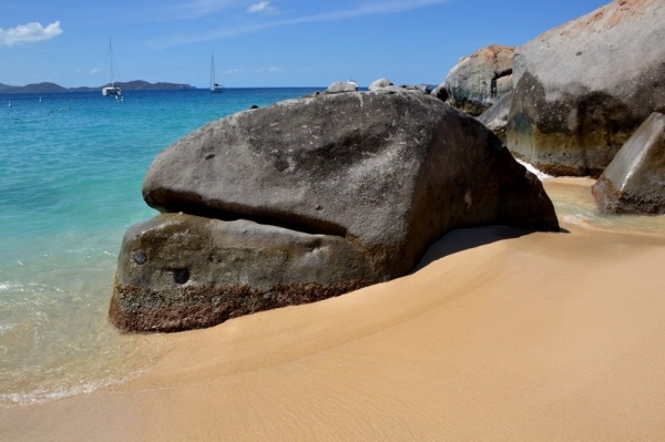 12.3. přeplouvám 70 mil na Britské pannenské ostrovy. Již za tmy zakotvím v první zátoce a ráno přepluji na města Spain town. Zde se přihlásím a hned pokračuji do jižní zátoky St. Barts. Ta je naprosto unikátní a obrovské kamenné balvany na pláži vytvářejí doslaova kulisu z jiného vesmíru.