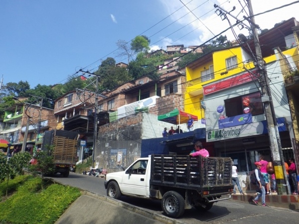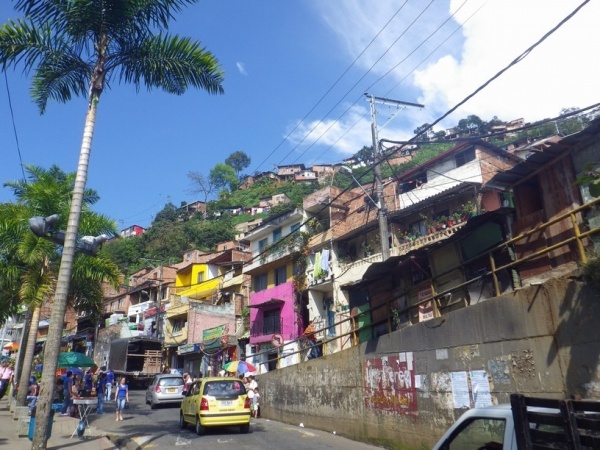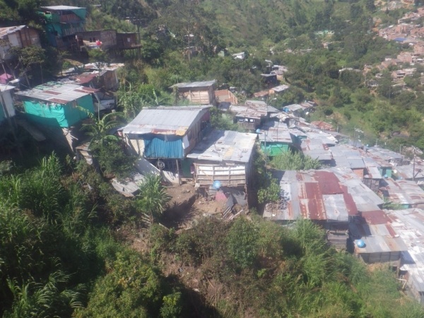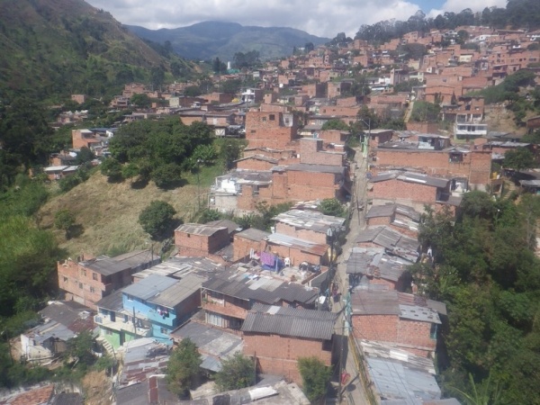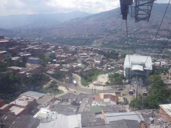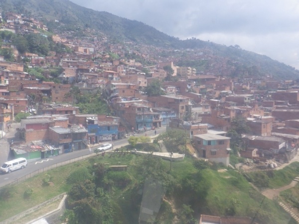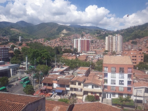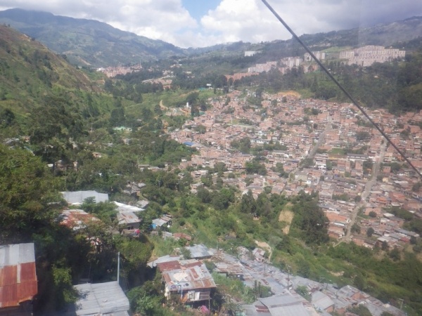 Na 2 dny jsem si udelal kratky vylet do mesta Medellin. To lezi v horach jiz ve strednim pasmu 1600 m/n/m. Je to znat i na teplote, ktera je zde daleko prijemnejsi. Mesto lezi v udoli a rozprostira se do vsech stran po svazich okolnich hor. Centrem mesta vede udolim metro a na nej navazuji lanovky, ktere rozvazeji cestujici do kopcu. Je z nich dobry vyhled na okrajove chude casti mesta.
