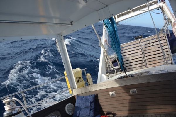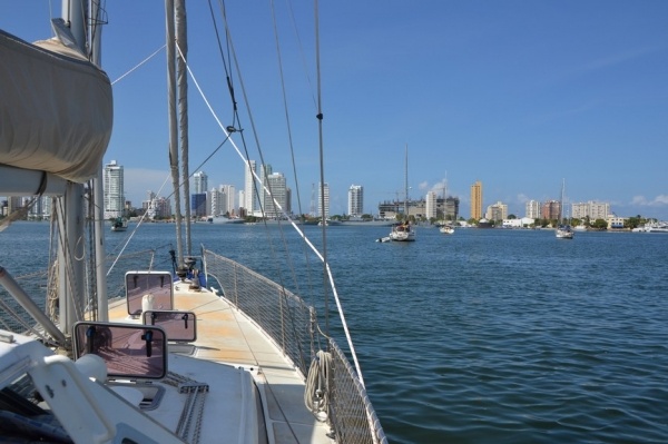 10.11. vyplouvám s východním větrem 20 kn na západ. Čeká mě docela náročná plavba kolem pobřeží Kolumbie. To je vyhlášené velkými vlnami vznikající kvůli mořským proudům. Této oblasti se říká "Mys Horn Karibiku." Mě nejdříve docela vyplašili venezuelští rybáři, kteří se ke mě přiblížili asi na 20 metrů a snad 10 minut pluli vedle mě. Něco gestikulovali, ale nakonec zmizeli rychle jako se objevili. Pak se začalo moře vlnit a skutečně obávané vlny mi hodně znepříjemnili plavbu. 2 dny jsem se houpal jako na horské dráze a musel jsem křižovat na zadní vítr. Jet přímým kursem vůbec nešlo. Za 48 hodin jsem uplul 200 mil a byl jsem rád, že se schovám do mariny Santa Marta v Kolumbii.