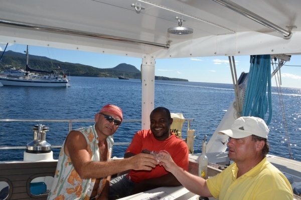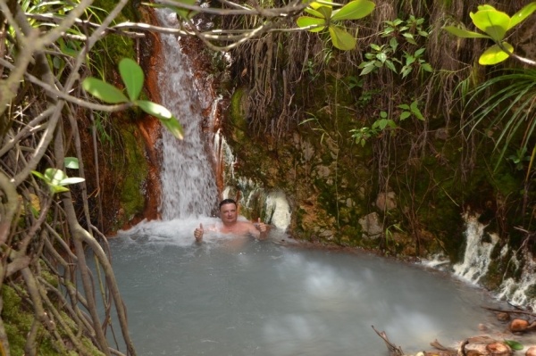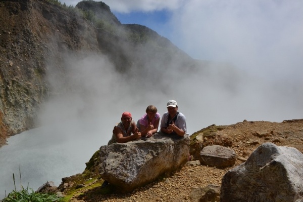 Dominika je známa divokou přírodou, kde se nabízejí úžasné výlety. My jsme se domluvili ze sousedními jachtaři na výletě k Vroucímu jezeru. Trek začíná v údolí v husté džungli a pak pokračujeme přes horský hřbet kolem sirných pramenů až k jezeru. V něm se voda skutečně vaří. Celkem jsme šlapali 6 hodin náročným terénem, ale stálo to za to.