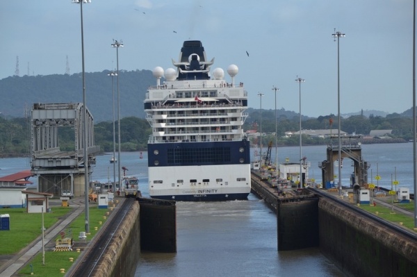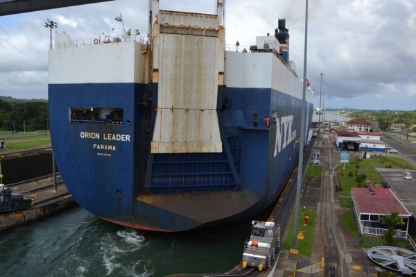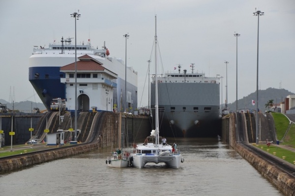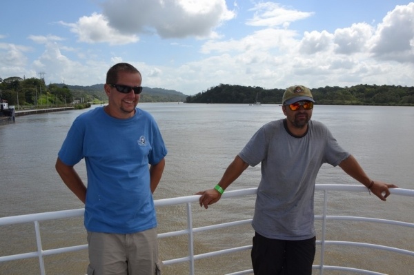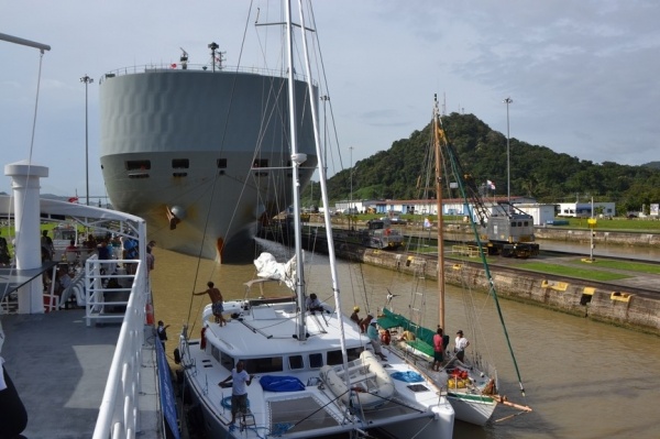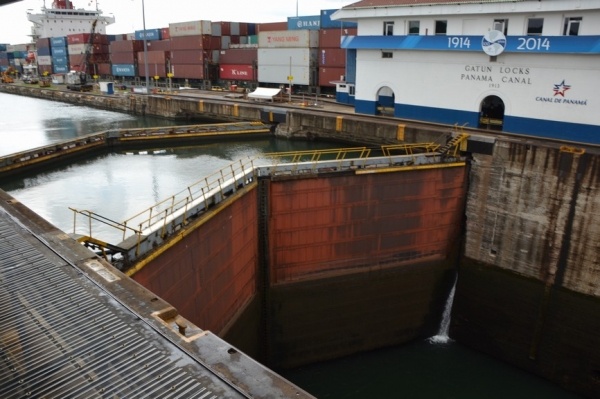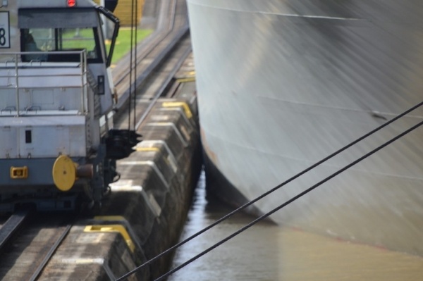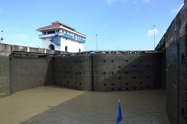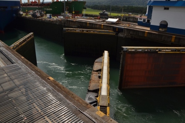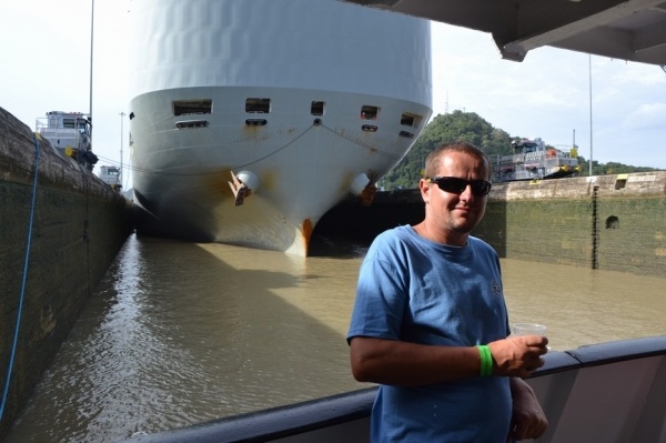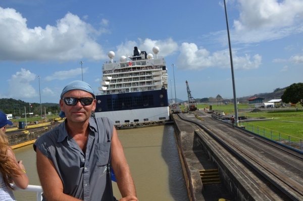 Na jezeře Miraflores nasedáme na turistickou loď a proplouváme 3 zdymadla do Pacifiku. Pohled na obrovské nákladní lodě sunoucí se do komory je fascinující. Loděnice staví lodě na největší možnou šířku, takže po stranách bývá pouze 20 cm místa. Tyto obry posouvají komorou elektrické lokomotivy, aby nedošlo k poškození této unikátní stavby. Vedle současného kanálu se staví nový, který bude mít šířku komor 55 m, tedy o 12 m širší než stávající kanál.
