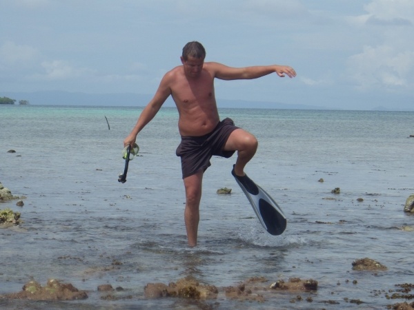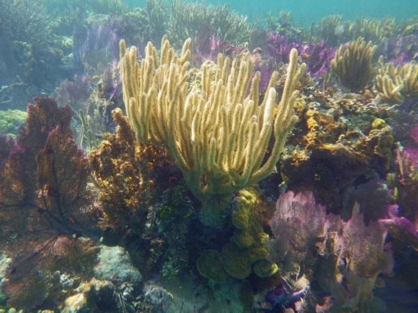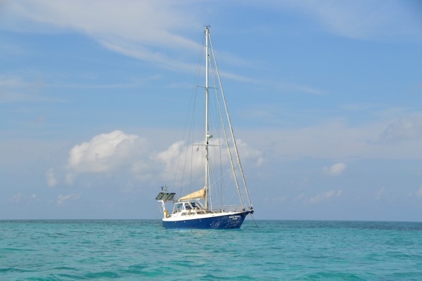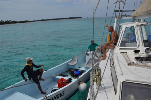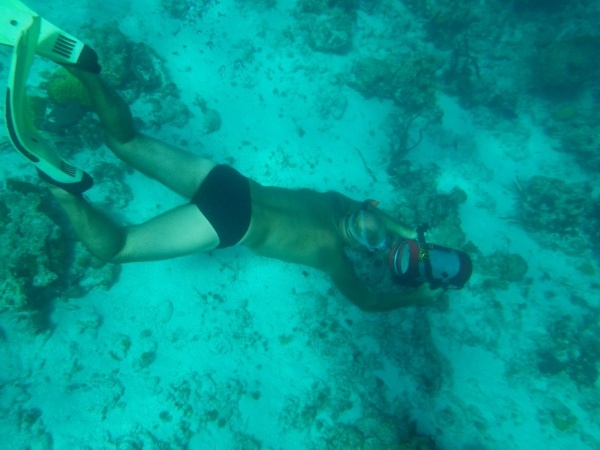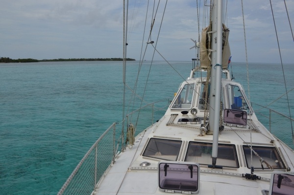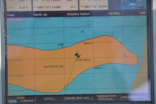 Pátek 24.října byl pro mě černým pátkem. Pluli jsme z atolu Blue Hole k pevnině k ostrovu Caulkner Cay. Navigace v Belize je velká zkouška štěstí a odvahy. Elektronická mapa je v podstatě k nepoužití, protože se podle ní občas pluje i po pevnině. Takže jediný způsob je mezi korály plout pomalu a dobře se dívat. I tak se každému občas podaří trochu drbnout do korálů. Hlavním problémem je, že místní úřady vůbec neřeší nějaké značení plavební dráhy mezi atoly. Bariérový reef před ostrovem Caulkner Cay má podle průvodce malý průplav, ale na mapě označen není a reálně také není označen. Takže pro každého jachtaře je to zpíše pokus a omyl. Pomalu se tedy blížím k útesu, když před přídí uvidíme korály. Stihnu zastavit, jenže boční vítr mě snesl na další korálové hlavy. Sněhurka zůstala zaklíněná v korálech. Skočil jsem do vody s maskou a odtlačil loď od korálu a Radek poslouchal moje pokyny a řadil střídavě vpřed a vzad. Po 10 minutách se nám podařilo vycouvat zpět na hlubokou vodu. Jenže to nás již z dálky pozoroval strážce zdejšího přírodního parku. Provedl nás tedy správnou dráhou na kotviště u města. Zde jsme museli do kanceláře a začalo velké vyšetřování. Byly nám zabaveny pasy a doklady od lodě a uloženy v trezoru místní policie. V sobotu přijeli zástupci port authority ze San Pedro a 2 hodiny se sepisovaly protokoly. Potom jsme jeli na obhlídku korálů a zde Hektor konstatoval, že nedošlo k žádnému poškození a tedy se nic nestalo. Vrátili nám doklady a vše tedy dobře dopadlo. Nakonec jsme společně vše oslavili v místním baru a Radek byl šťastný že má pas a může druhý den odletět domů. Na mojí otázku jestli jsem první jachtař s takovým problémem, mi sdělili že samozřejmě ne. Proč ale neoznačí průjezd mezi korály bójkami mi nedokázali odpovědět, ale prý o tom budou přemýšlet.