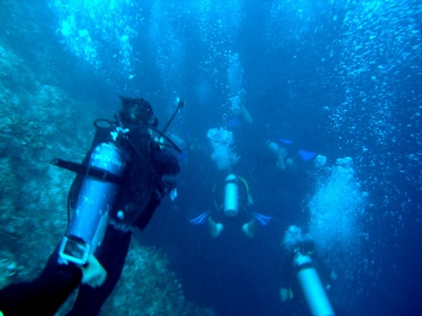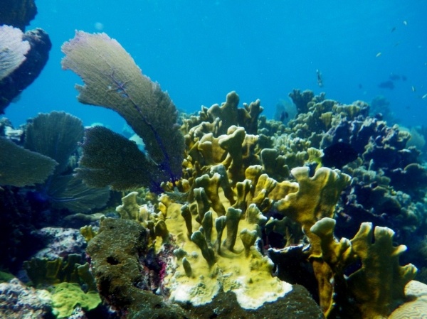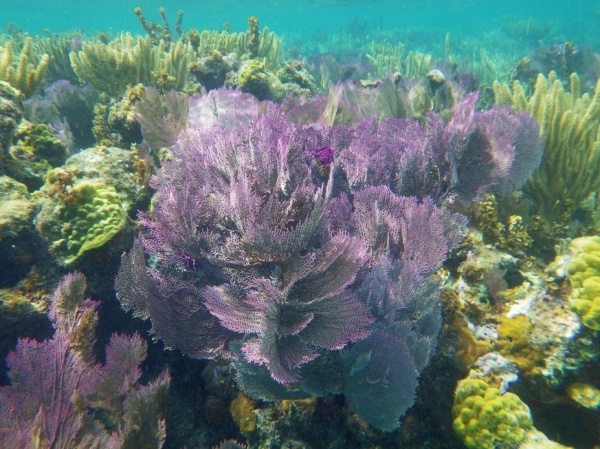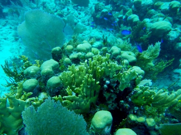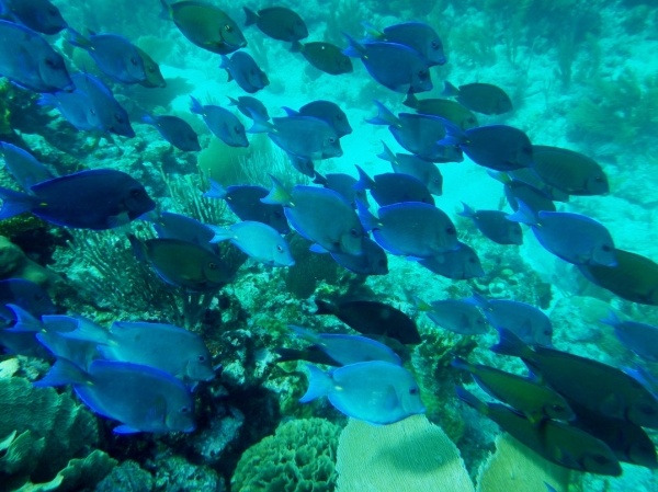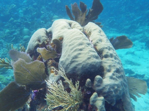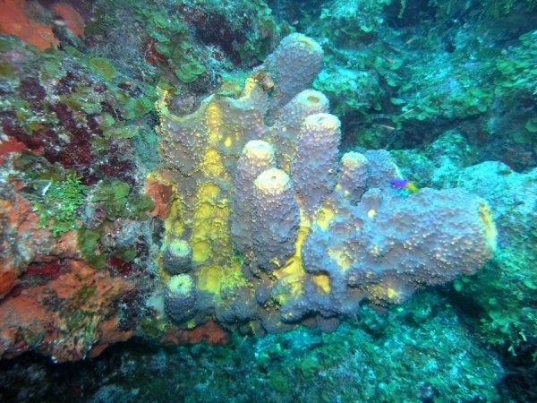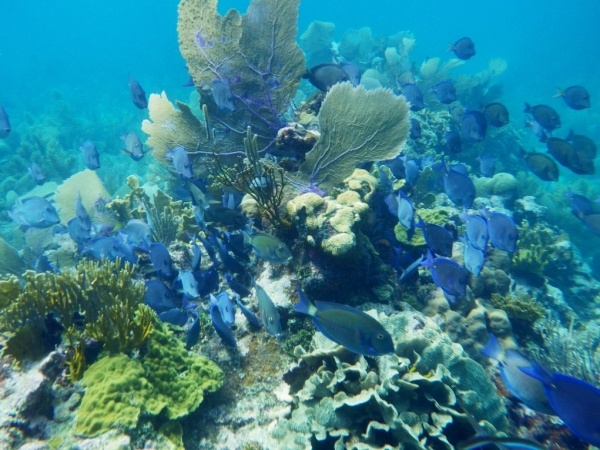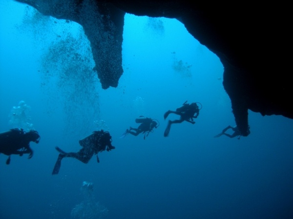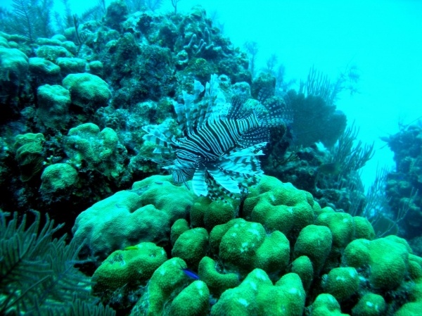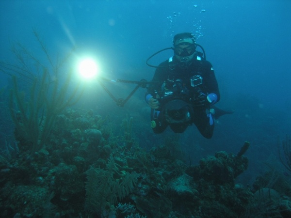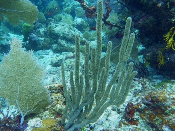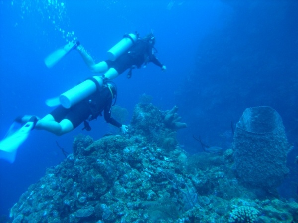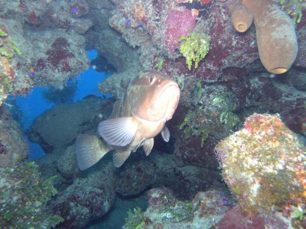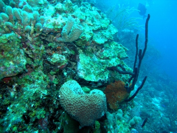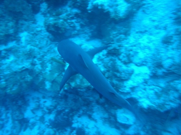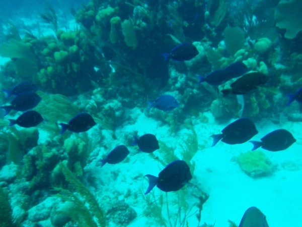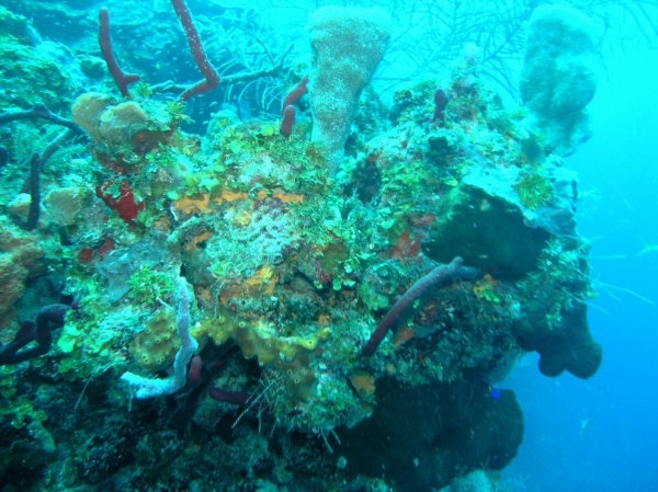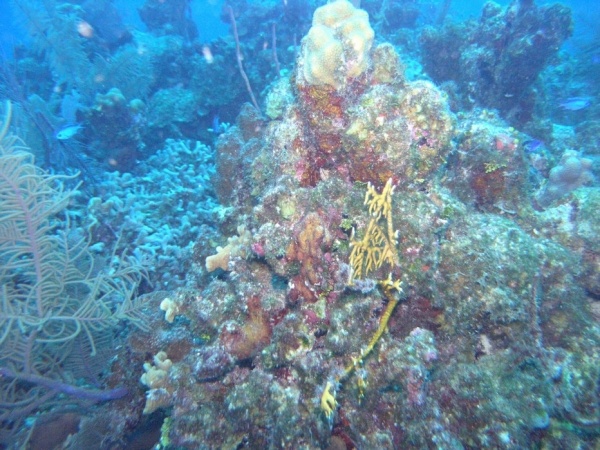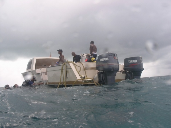 BLUE HOLE je světoznámý přírodní úkaz a vyhlášená potápěčská lokalita v Belize. Je to vlastně propadlá krápníková jeskyně, takže vznikla díra v průměru 300 m a hluboká 140 m. Nemohu si tedy nechat ujít tento potápěčský zážitek a vracím se sem se skupinou potápěčů. Jenže bohužel nás zklamalo počasí a na otevřeném moři nás právě zastihla bouře. Je šedivá obloha, takže vivitelnost pod vodou je značně snížena. Nejdříve padáme přes písečnou hranu do hloubky 40 m, kde je veliký krápník. Modrá hlubina pode mnou je doslova děsivá a je to skvělý zážitek. Ostatní ponory na vedlejším korálovém útesu jsou také hezké a musím prohlásit, že potápění v Belize je určitě nejkrásnější co lze v Karibiku vidět.