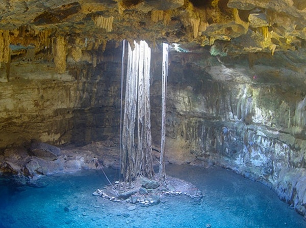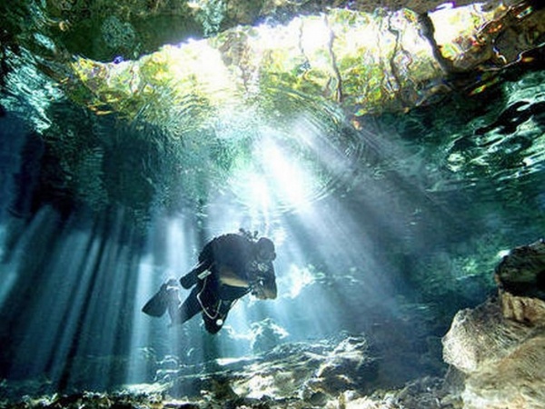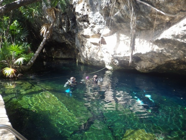 Cenote jsou mexické jeskyně zaplavené sladkou vodou. V hloubce okolo 15 metrů jsou však propojené s mořem, čímž vzniká zajímavý fyzikální jev. Slaná voda je ohraničena jakýmsi mlžným tvarem, takže při potápění máte na této hraně vše rozmazané jako v rozostřeném fotoaparátu. Mimo tuto hranici je však úžasná viditelnost klidně i 100 m. Dosud jsem se nikdy nepotápěl v tak čisté vodě.