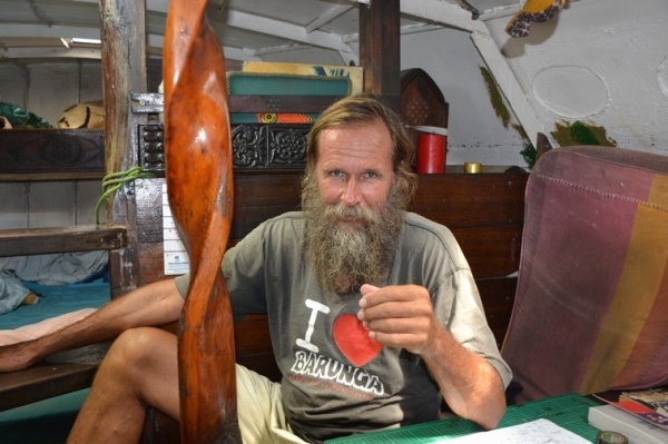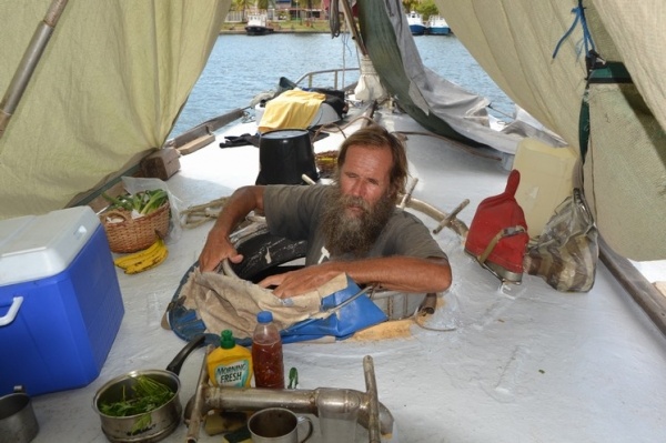 V marině Porto la Cruz jsem potkal velmi zajímavého jachtaře. Kris je Čech, ale v roce 1976 emigroval a usadil se v Austrálii. Postavil si ocelovou plachetnici typu čínské džunky. Již 20 let se s ní toulá po celém světě a má napluto přes 80000 mil. Zajímavé je, že nemá motor, nemá žádnou elektriku na lodi, nemá tedy ani navigaci. První 2 roky neměl ani kompas a naviguje podle hvězd a sextantu. Toto je opravdový námořník, který miluje moře a užívá si plavbu. Současně cestuje na svém kole i po souši a projel celou Afriku a nyní chce projet Střední Ameriku.