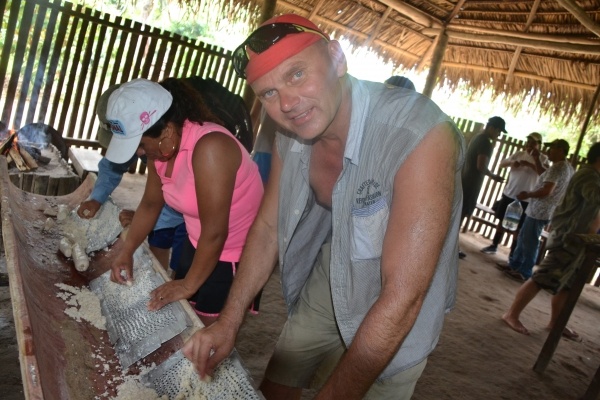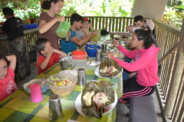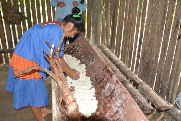 Comunida Siona se jmenuje indiánský kmen, který zde ľije na břehu reky. Dříve to byli klasičtí indiánští nomádi, kteří se stěhovali dľunglí za potravou. Dnes se však jiľ usadili na jednom místě, ale stále ľijí podle starých způsobů. Obľivou je jim dľungle, kde si pěstují ovoce a zeleninu, v řece loví ryby a u domků chovají drůbeľ. Kontakt s civilizací je pouze dlouhou cestou po řece. Mladá dívka nám ukazuje zpracování tradiční plodiny juky, z které společně vyrobíme těsto a upečeme chléb.