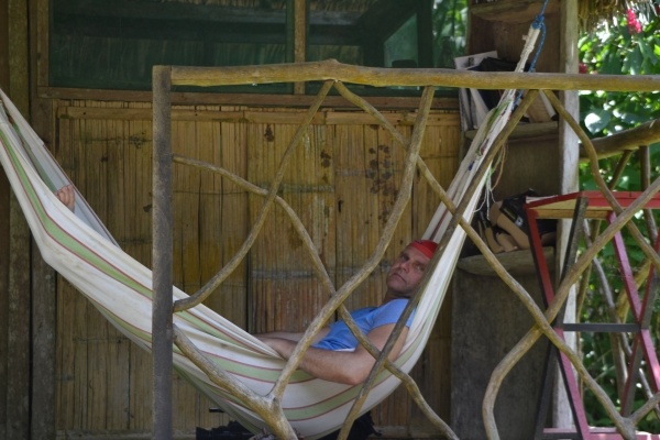 Po 3 dnech v džľungli se přesunu do města Coca, kde opět podniknu výlet do dľžungle. Nejdříve navštívím Isla del Mono /opičí ostrov/ ®Žije zde několik druhů opic a vyfotografovat je ve vysokých stromech je opravdu složité. Průvodce Hektor zde ľžije se svojí manľelkou z Německa a mají 4 děti a opravdu ľžijí v divoké přírodě. K obědu nám upečou rybu s jukou a zeleninou. Odpoledne pokračujeme po řece na lagunu, kde ľžije mnoho druhů ptáků a kajmani až 5 m velcí. Noční pozorování kajmanů nám však přeruší silný déšť».