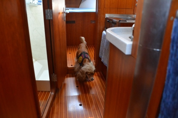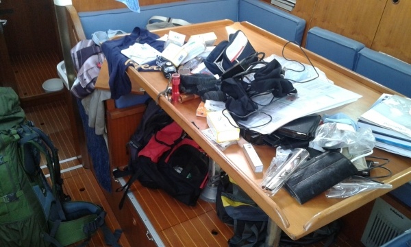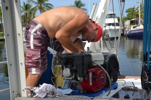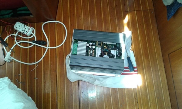 Hned druhý den se dávám do kontroly lodě. Motor je v pořádku a i generátor pracuje. Mám však problém s nabíječkou, která je zřejmě od vlhkosti zkratovaná. Pokouším se jí zde opravit, ale zatím se to nedaří.