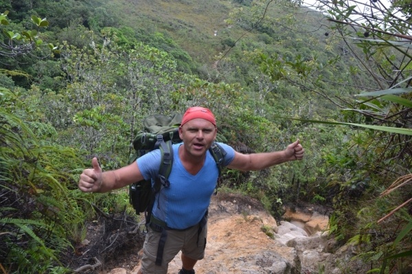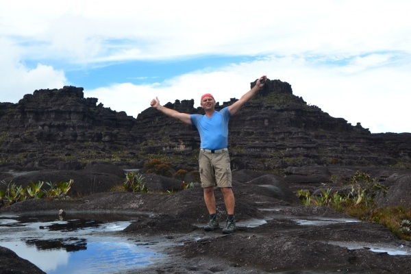 Já se vydám na výšlap s Peterem a čeká nás 6 dnů šlapání s plnou polní. Spíme ve stanu, jíme studenou stravu a nejhorší pro mě jsou změny počasí. Chvíli svítí slunce, potom je zataženo, potom zaprší a to se celé několikrát opakuje. Největší strach mám z velké zátěže na zádech, protože si neseme stan, spacáky, oblečení i jídlo. Ale po prvním dnu se rozejdu a zvládám to dobře. 2 dny se přibližujeme k hoře a 3. den vystoupáme nahoru. Je to převýšení 900 m a dá mi to zabrat. Procházíme džunglí, vodopádem i šplháme po skalách. Po výstupu nahoru se nám však otevře něco neskutečného. Moře zde před miliony let vytvořilo obrovské skalní formace a unikátní flora všemu dodala barvy. Dva dny strávíme na vrcholu, kde se ubytujeme v jeskyni a procházíme po okolí. Pak jiz další 2 dny sestupu a mám toho opravdu dost. Jsem rád, že jsem to zvládl bez problémů. V batohu jsem našel škorpiona a jednu turistku kousl chřestýš, kterých je zde mnoho. RORAIMA je to zážitek, na který se nezapomíná.