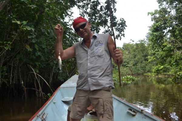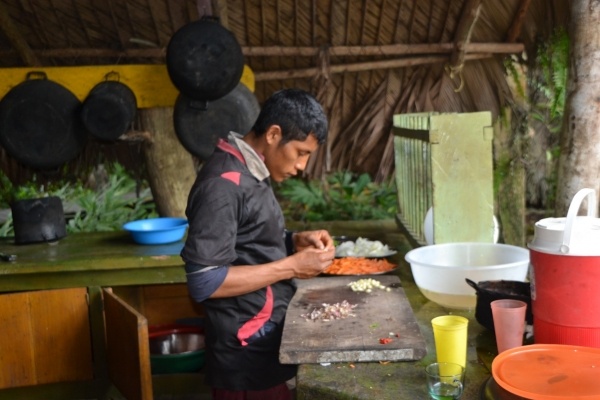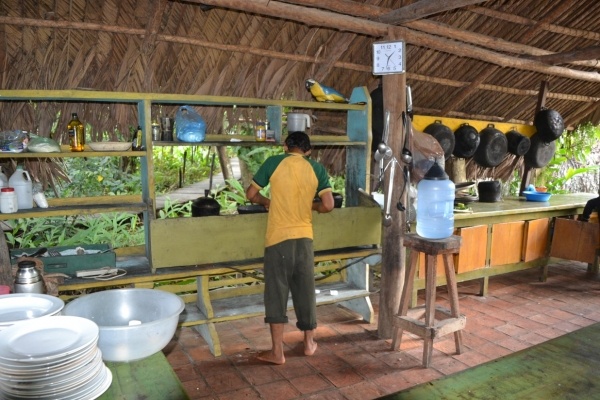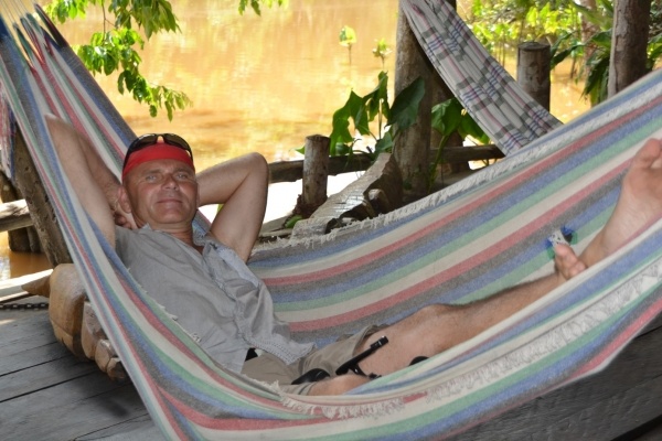 Kemp na řece je opravdu přírodní a v dokonalém souladu s přírodou. Bungalovy jsou pouze z palmového listí a všude kolem jsou ptáci z džungle, kteří běhají po stolech a loudí jídlo. Po setmění však nastává peklo v podobě komárů. Miliony jich na mě útočí a nepomáhá ani repelent a dokonce mě koušou i přes kalhoty. Jediná obrana je útěk do postele s moskytiérou.