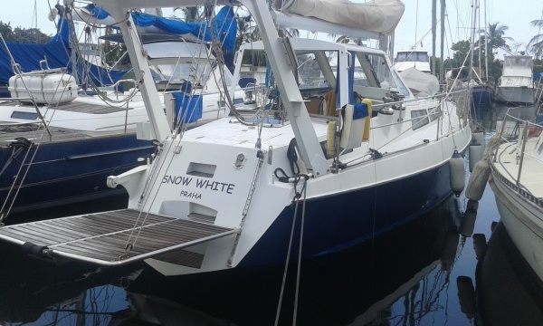 V prosinci jsem odjížděl na měsíční vánoční návštěvu do Čech. Z pracovních důvodů se návštěva protáhla na 6 měsíců. 8. července tedy konečně stojím na pražském letišti a vracím se na Sněhurku. Nejdříve mě nechtěli nechat v Madridu nastoupit do letadla, protože jsem měl pouze jednosměrnou letenku. Potom mě v Caracasu udělali celníci důkladnou kontrolu a musel jsem zaplatit clo na náhradní díly, které jsem si vezl. Tím jsem nestihl další letadlo a musel v Caracasu přespat. Ráno jsem naštěstí za 300 Kč koupil novou letenku a v sobotu 9.7. stojím konečně v přístavu Puerto la Cruz.