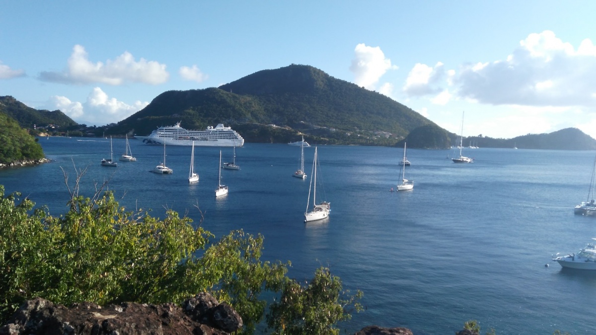 Na Štědrý den 24.12. pluji na Guadeloupe a odpoledne zakotvím v hlaním městě Pointe di Pitre. V marině jsou otevřeny pouze 2 restaurace. V první podávají menu za 69 EUR, což odmítám investovat a skončím ve druhé. Tam bylo levněji, ale tak ošklivé jídlo jsem již dlouho nejedl. No ušetřil jsem a ještě ráno mě bylo špatně a těžko. Místo stromečku mě svítila odplouvající cruiserová loď AIDA.