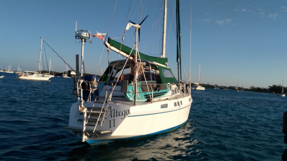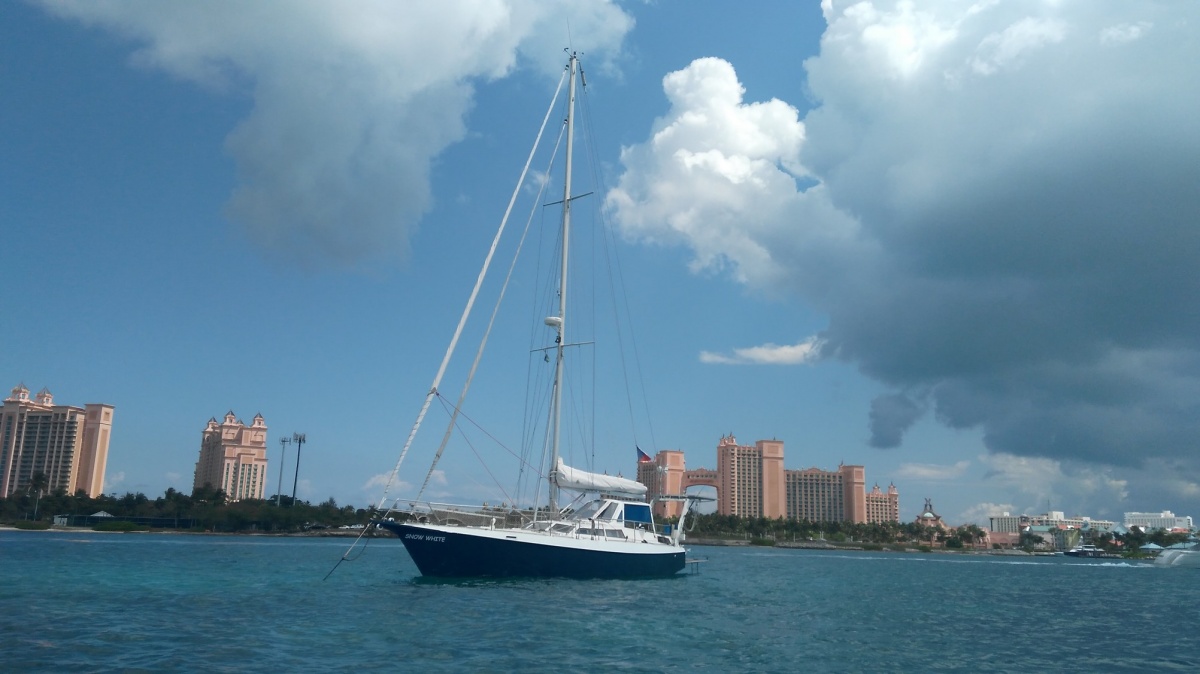 V neděli 10.března vyplouváme na Bahamy. 180 mil jsme pluli 34 hodin a já jsem měl po dlouhé době mořskou nemoc. Na ostrov Mayaguana jsem doplul dost zničený. Na ostrově se pouze přihlásíme, protože zde jinak nic není. Rosa vylezla na palmu a natrhala kokosy, takže jsme si k večeři připili mojí oblíbenou kokádou