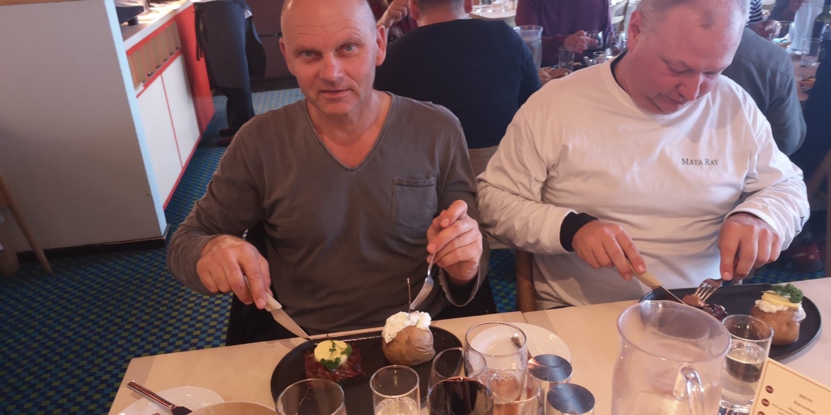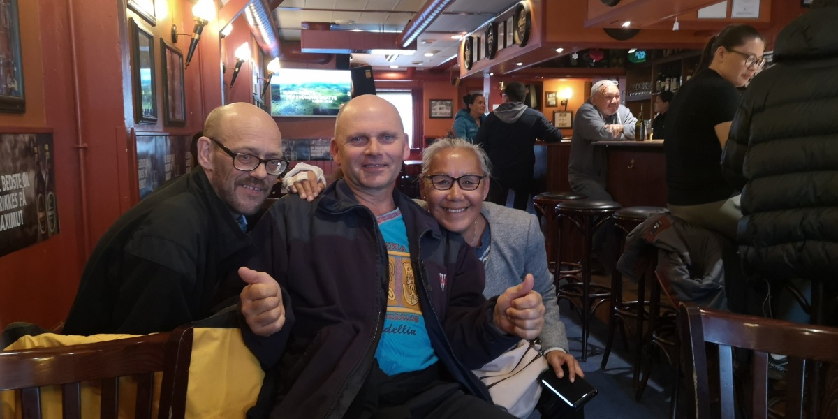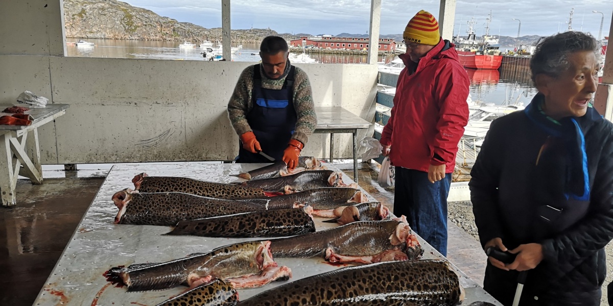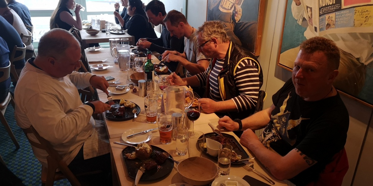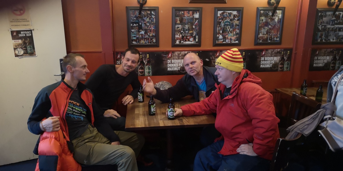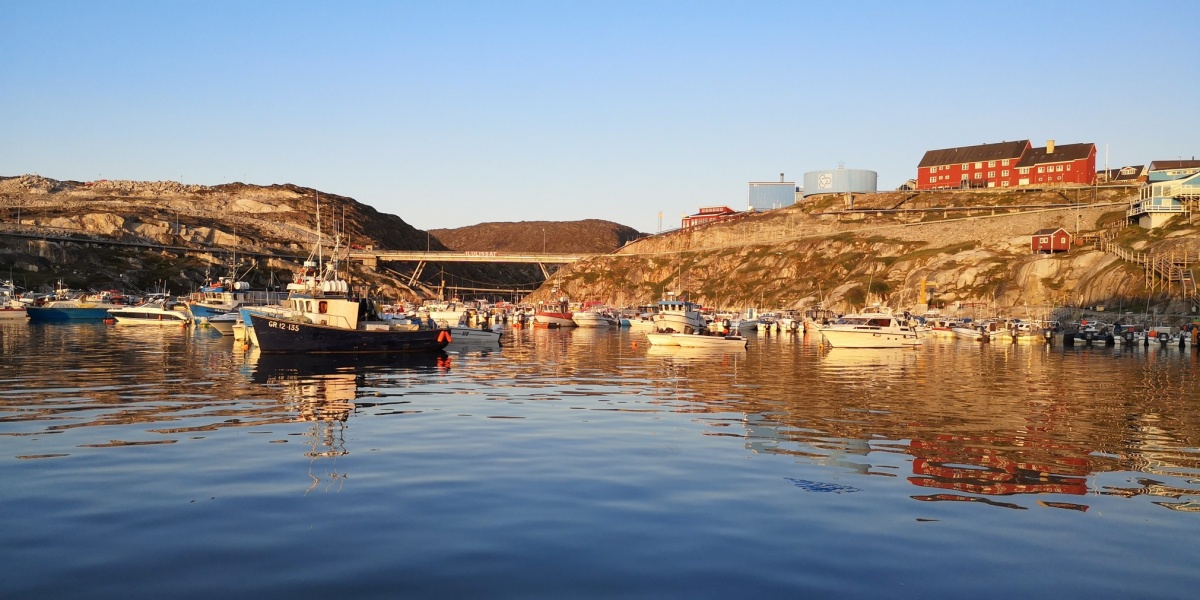 Na závěr pobytu v Nuuku jsme posádky obou lodí šli na večeři do vyhlášené místní restaurace. Grónsko je všeobecně drahá země a tato večeře byla určitě zatím nejdražší v mém životě. Ochutnal jsem steak ze soba a pižmoně a přiznám se, že to bylo naprosto vynikající a skvělý závěr pobytu v Nuuku. Poslední foto je při návratu o půlnoci do přístavu. Je zde i v noci úplné světlo, což má i vliv na spánek, který nepřichází.