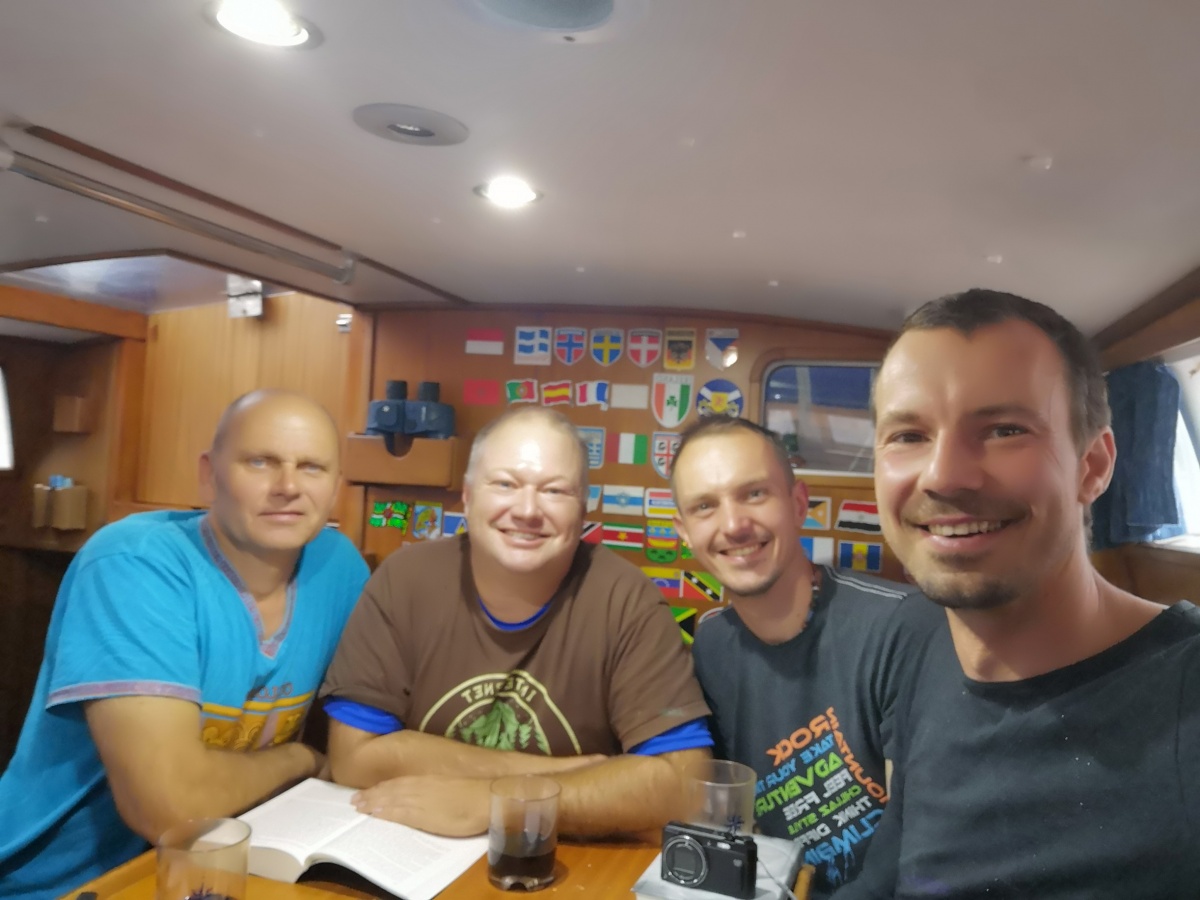 16.7. přilétá do Upernaviku Luděk jako třetí člen arktické posádky. Nastává tedy poslední příprava na další plavbu. Pro mě to znamená další opravy, opět si cvičně vyndám převodovku, namontuji nový ovladač kotvy, na stěžni namontuji novou směrovku větru, dotankuji plné nádrže nafty a pak již jenom poslední nákup a doplnění zásob na dlouhou plavbu.