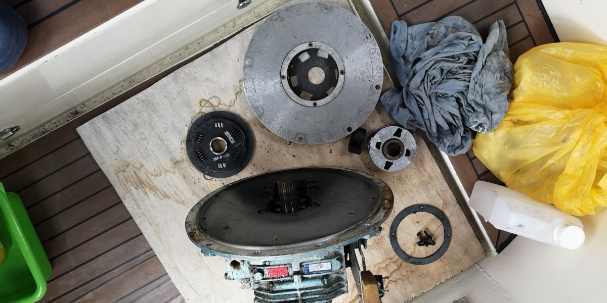 Poslední dobu jsem stále citoval zvláštní vibrace z převodovky. V Kanadě jsem si proto pořídil novou tlumicí spojku, přesně podle typu motoru a převodovky. V Nuuku jsem si naplánoval nějaký den na výměnu. Měla to být práce na celý den. Jenže, když jsem sundal převodovku, tak jsem byl blízko infarktu, protože původní spojka je úplně jiného typu. Sehnat zde nový díl je bezpředmětné a posílat z Evropy znamená 2 týdny. Nastává tedy plán B a moje improvizace. Celý den chodím po městě a navštěvuji různé obchody a dílny. Nakonec se mě podaří domluvit v dílně, kde mají soustruh a vrtačku. Starou přírubu jsme osoustružili a z druhé strany svrtali s novou spojkou. Současně jsem i vyměnil simering na převodovce a po 3 dnech práce je zase vše zpět a motor běží jako hodinky. Dost jsem si oddychl a můžeme pokračovat v další plavbě na sever.