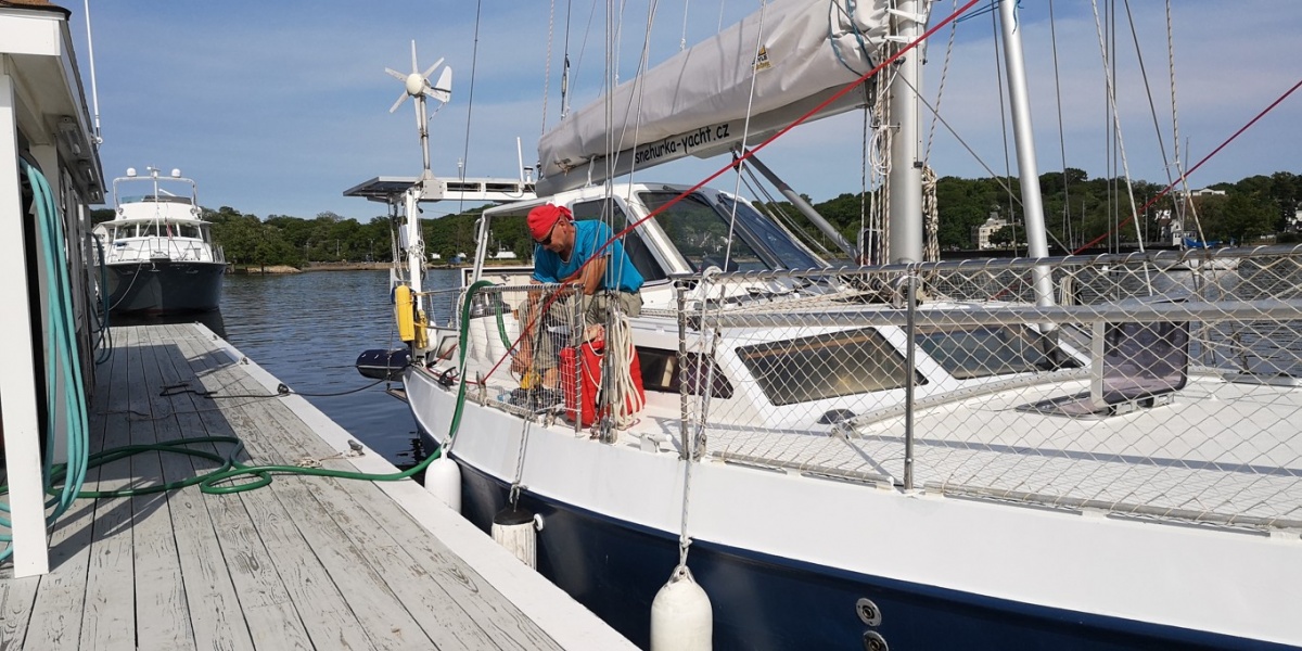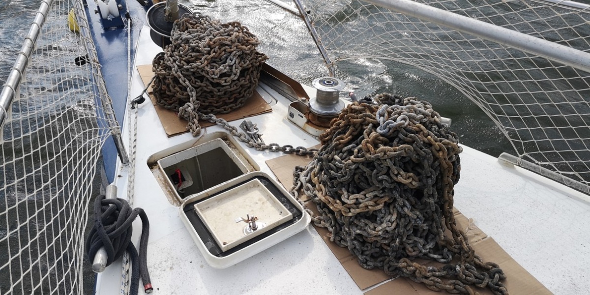 Dalším důležitým úkolem byla výměna řetězu. Ten poslední, který jsem kupoval na Floridě vydržel pouze 5 let, takže jsem se konečně rozhodl koupit nerezový. Jenže ten je zde v USA neuvěřitelně drahý, takže jsem si ho objednal z Evropy za třetinovou cenu i s dopravou. Pracovat s 200 kg řetězu a vyměnit ho na lodi je pak opravdu zábava.