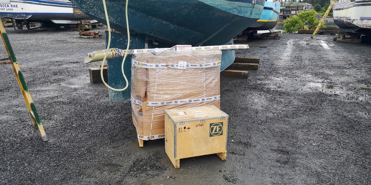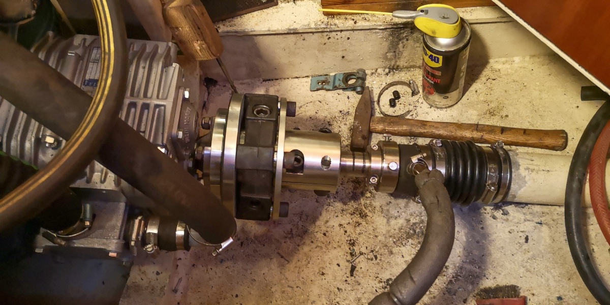 Okamžitě se dávám do práce, protože toho mám opravdu hodně. Včechny náhradní díly jsou již zde, takže začnu vymontováním staré hřídele, vrtule i ložiska. Namontuji novou převodovku, tlumící spojku, hřídel, ložisko i vrtuli. Takže mám prakticky nový celý pohonný systém. Potom obrousit trup, natřít antifouling a mohu zpět na vodu.