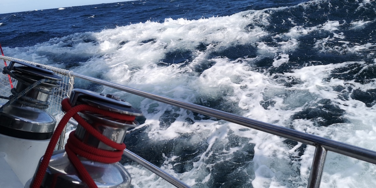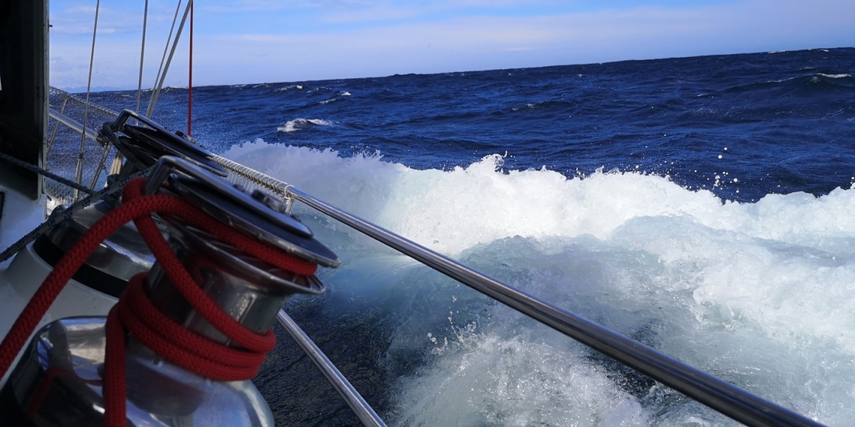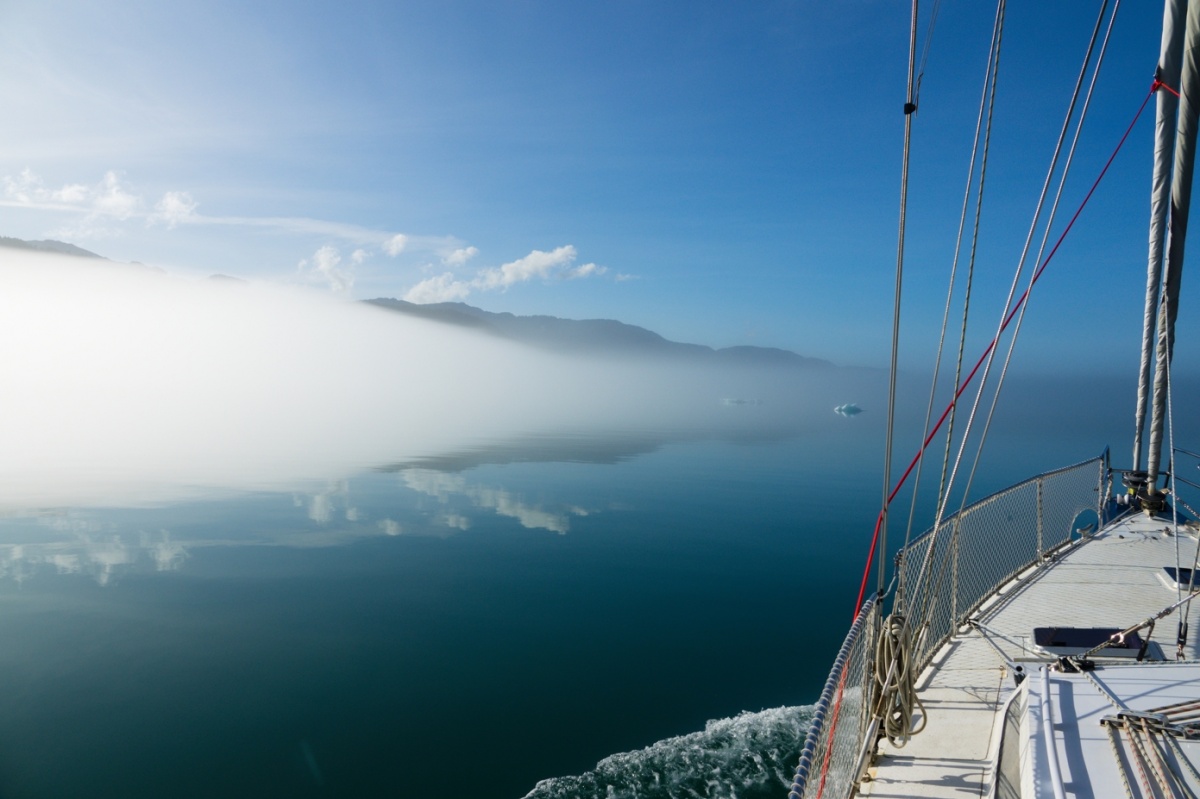8.srpna konečně vyplouvám z Kodiaku. Čeká mě přeplavba 180 mil k Aljašskému pobřeží. Vítr  postupně sílí na 30 kn, takže se pořádně pohoupu a statečně držím svůj žaludek, který si opět musí zvykat po dlouhé pauze na mořské vlny.