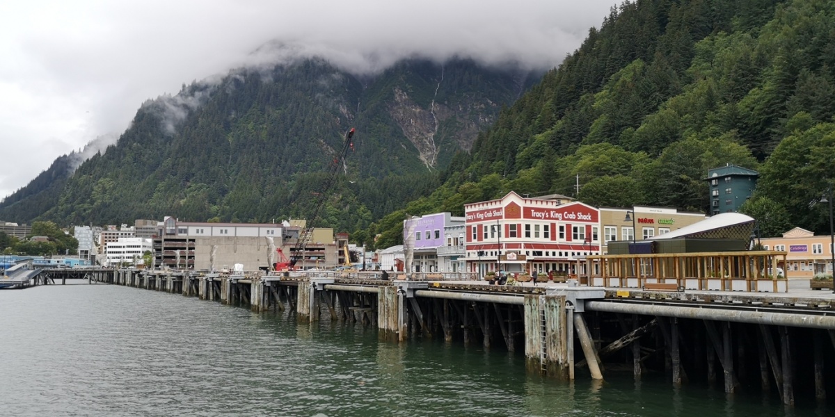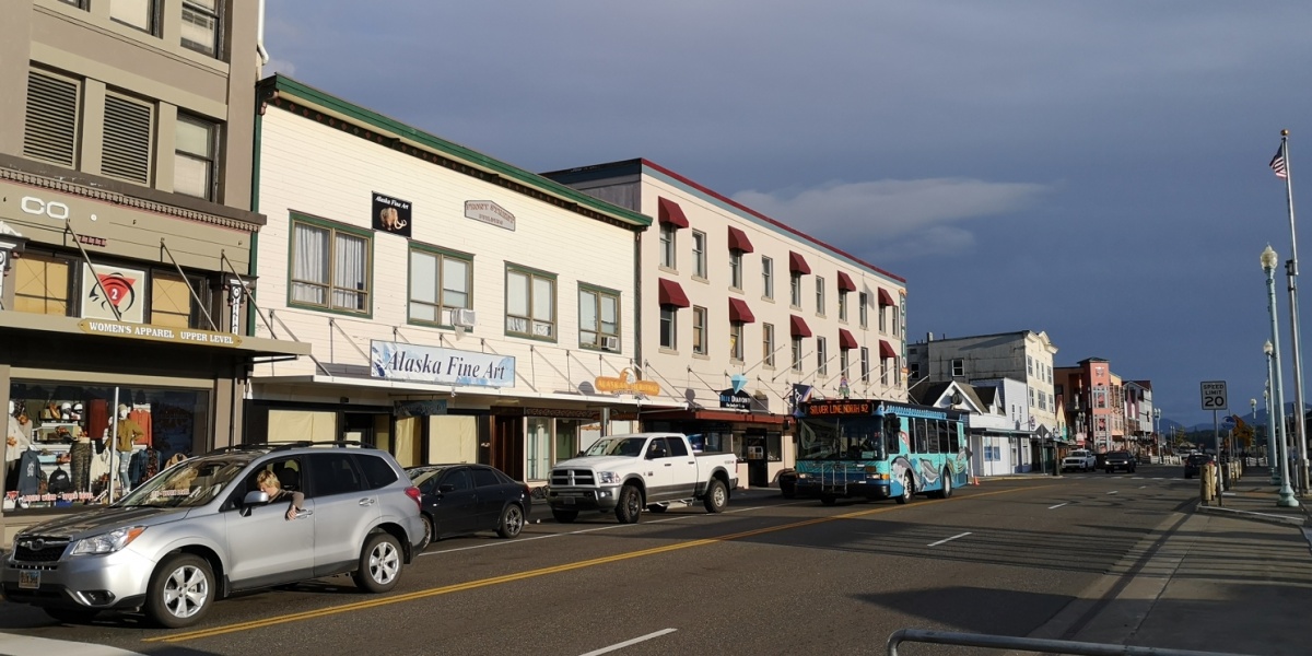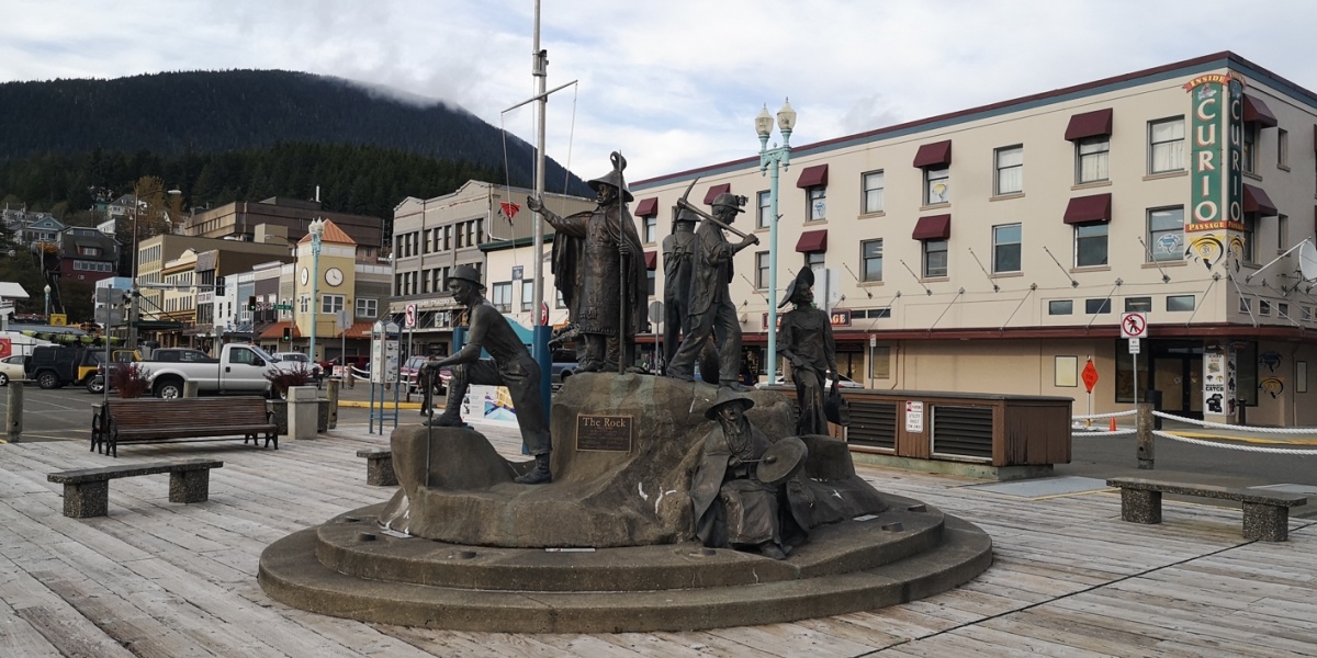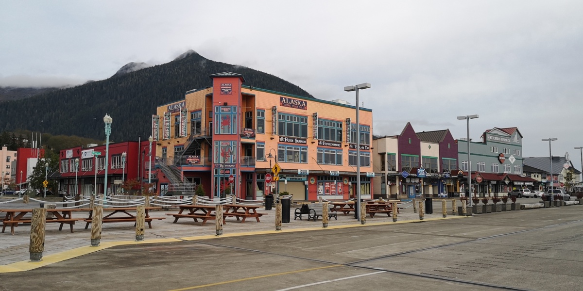 3 dny dlouhá přeplavba podél pobřeží na jih mě posune do hlavního města Aljašky Juneau. To bývalo v době zlaté horečky na Klondaiku vstupní branou na Aljašku, protože sem připlouvaly lodě ze San Franciska s tisíci dobrodruhů. Je zde několik dřevěných domů zachovaných z této doby. Juneau bylo vždy plné turistů a každý den sem připlouvaly cruisingové lodě s tisíci návštěvníky. Letos je zde pusto a prázdno. Obchody se suvenýry, restaurace, turistické kanceláře,hotely jsou zavřené. Na mnoha visí cedule k pronájmu nebo na prodej. Turistický ruch se zde absolutně zhroutil a mnoho firem zkrachovalo.