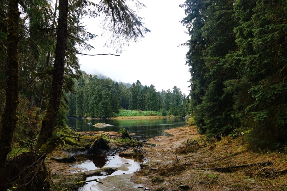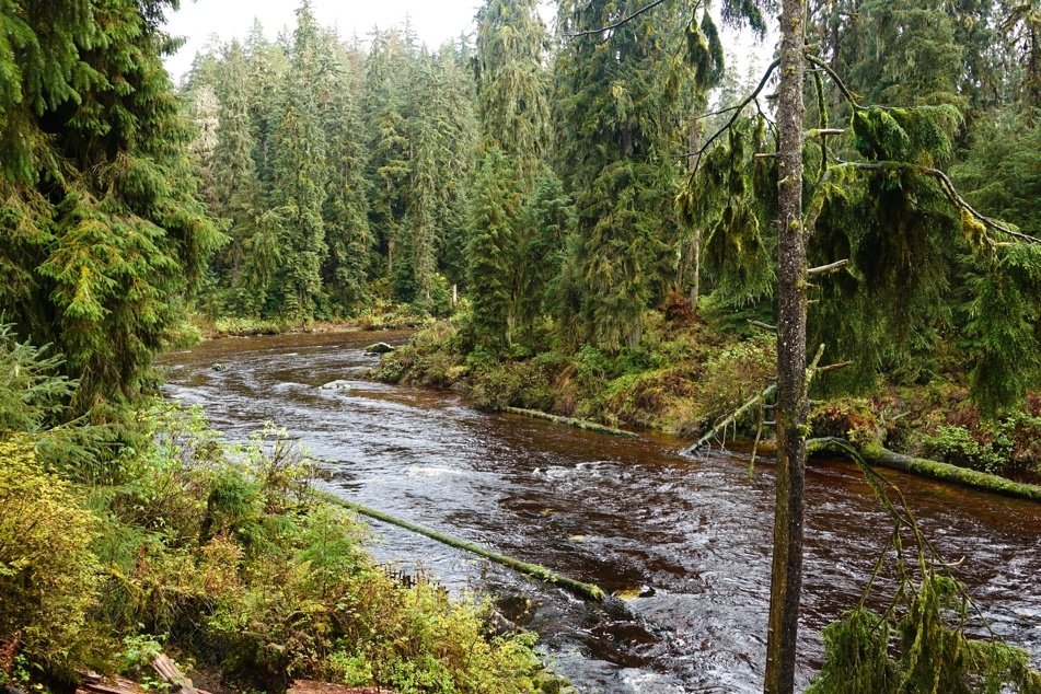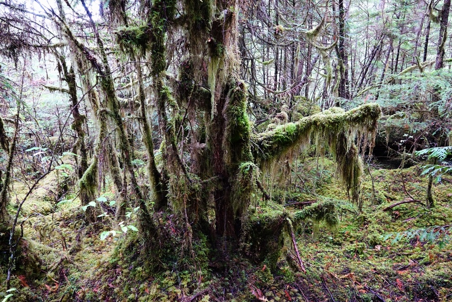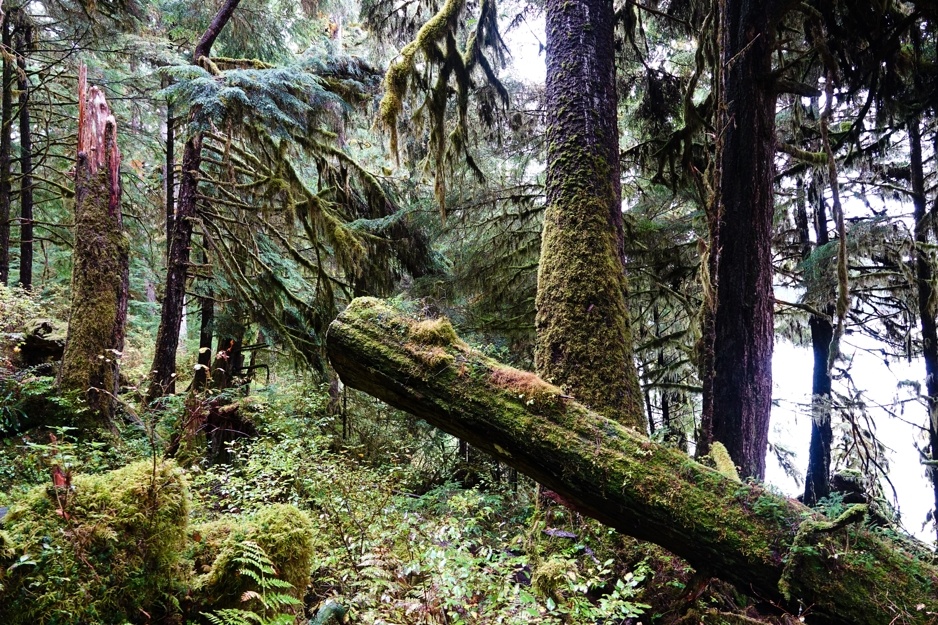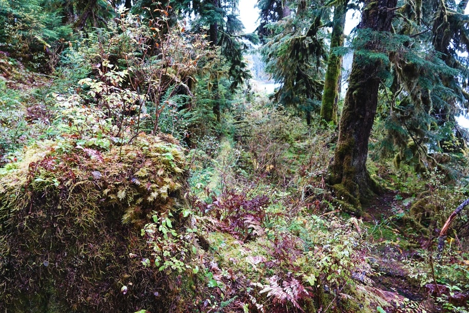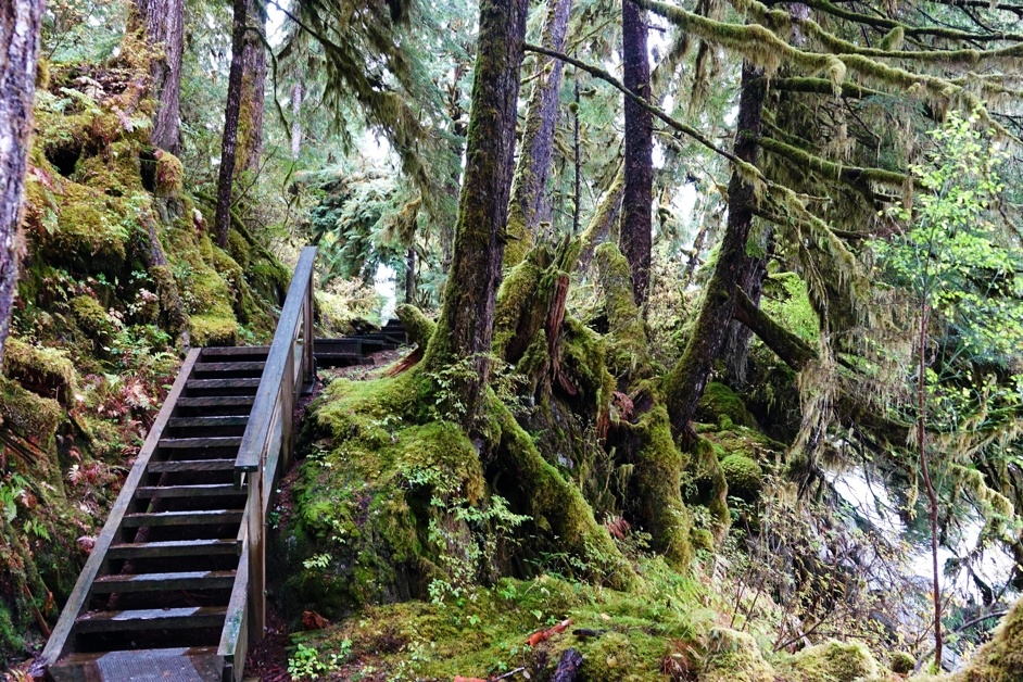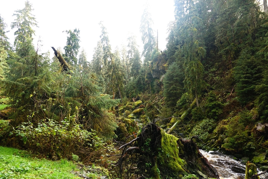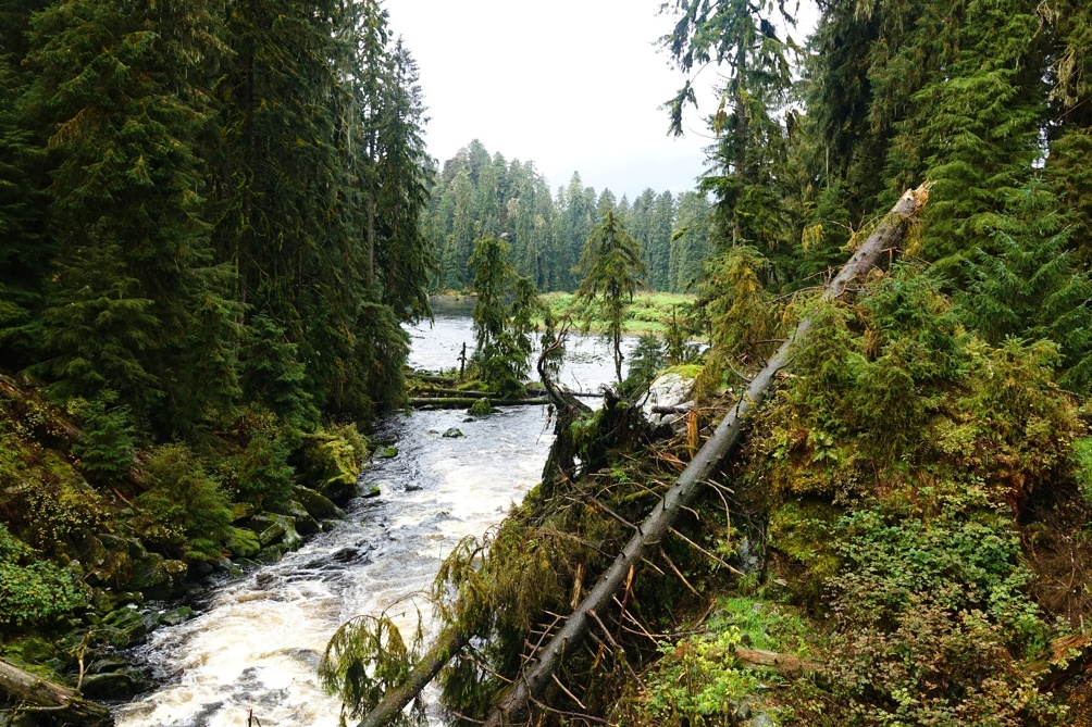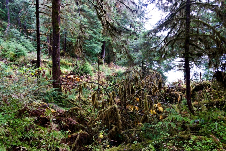 V zátoce Anan bay je lesní stezka k vodopádu, kde lze pozorovat medvědy chytající lososy. Jenže sezóna tahu lososů skončila koncem srpna. Tehdy jsou zde strážci parku, kteří chrání návštěvníky s puškami. Dnes je zde pusto a prázdno a park je zavřený. Přesto se sem vydám a snažím se nějakého medvěda objevit. Trochu se obávám, abych ho nepotkal přímo na stezce proti sobě. Ale bohužel mám smůlu, žádného nevidím, ikdyž o jejich stálé přítomnosti svědčí výkaly na stezce.