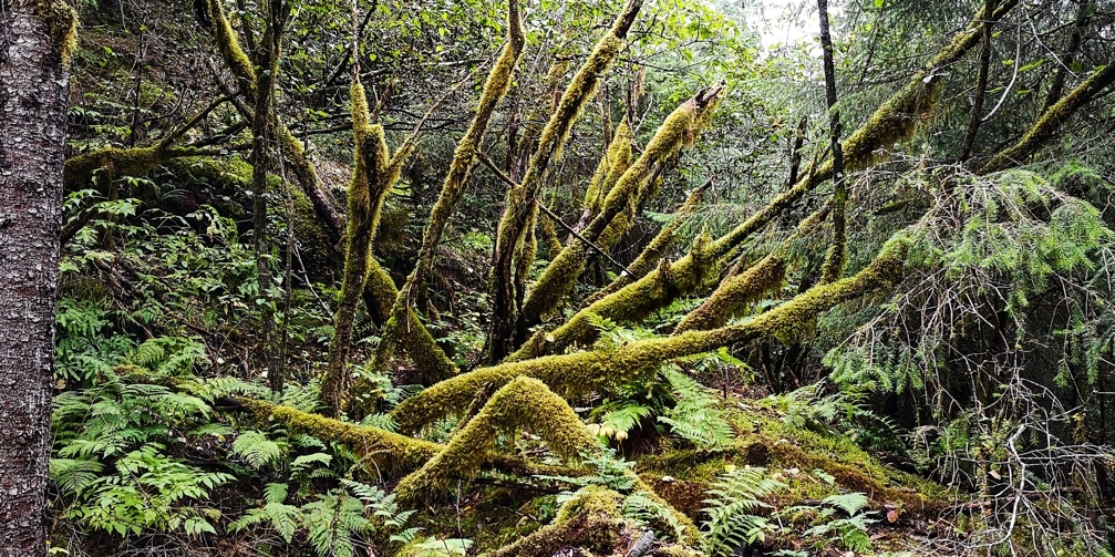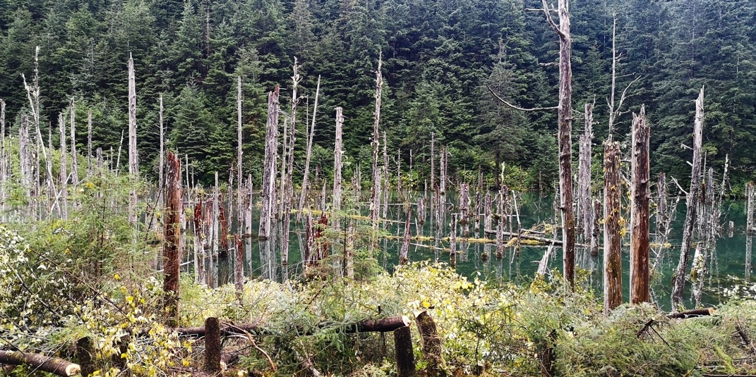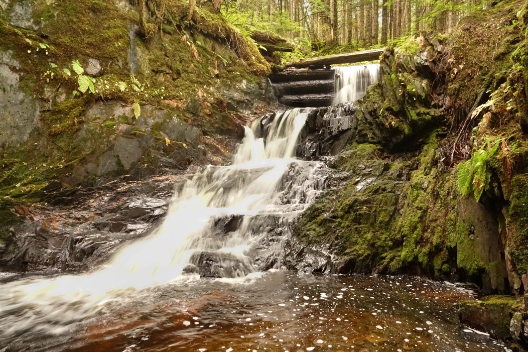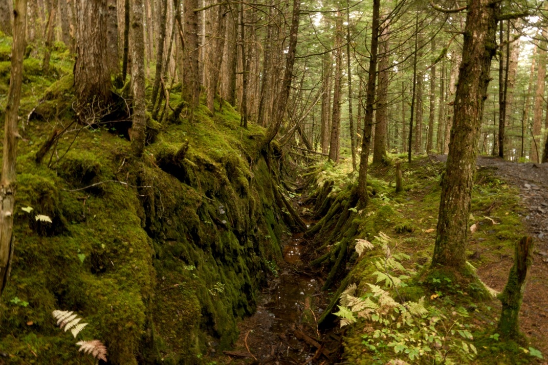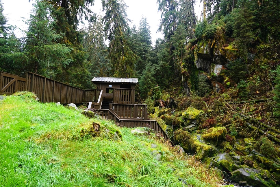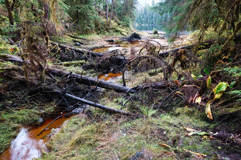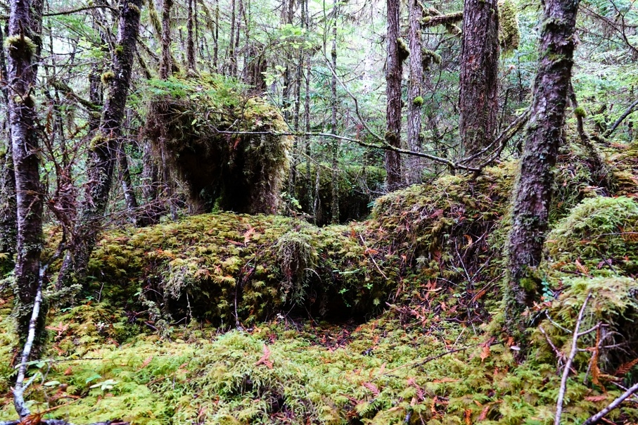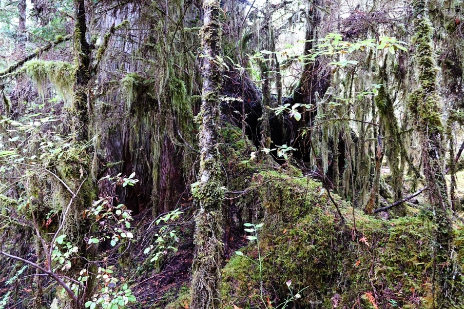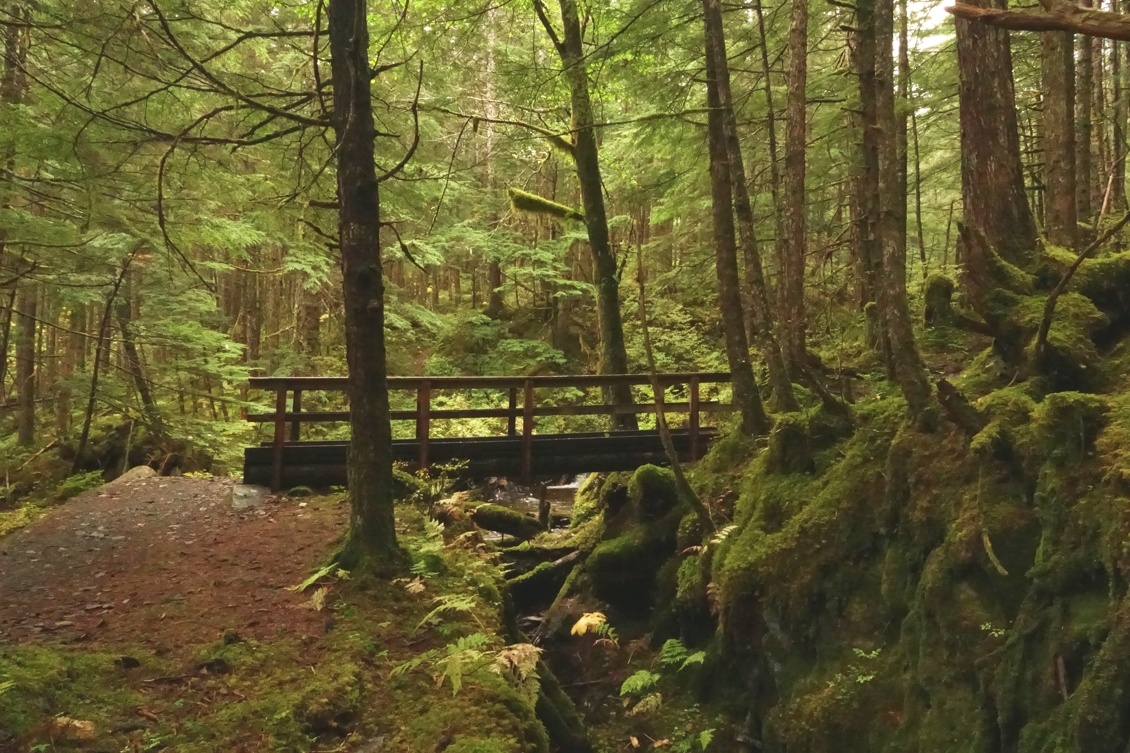 V zátoce Anan bay je lesní stezka k vodopádu, kde lze pozorovat medvědy chytající lososy. Jenže sezóna tahu lososů skončila koncem srpna. Tehdy jsou zde strážci parku, kteří chrání návštěvníky s puškami. Dnes je zde pusto a prázdno a park je zavřený. Přesto se sem vydám a snažím se nějakého medvěda objevit. Trochu se obávám, abych ho nepotkal přímo na stezce proti sobě. Ale bohužel mám smůlu, žádného nevidím, ikdyž o jejich stálé přítomnosti svědčí výkaly na stezce.