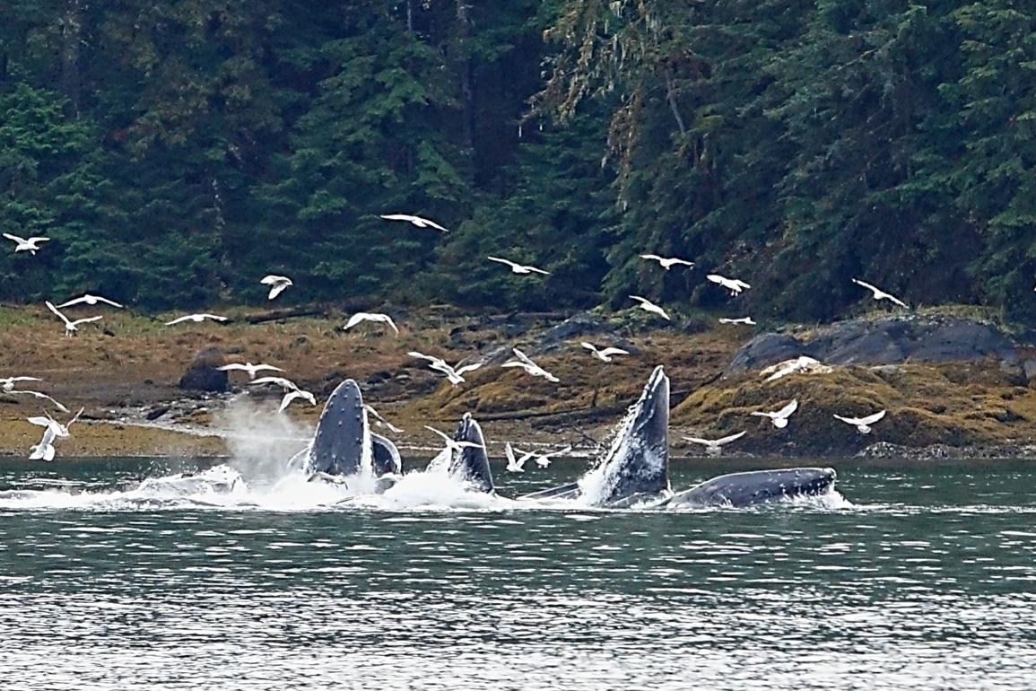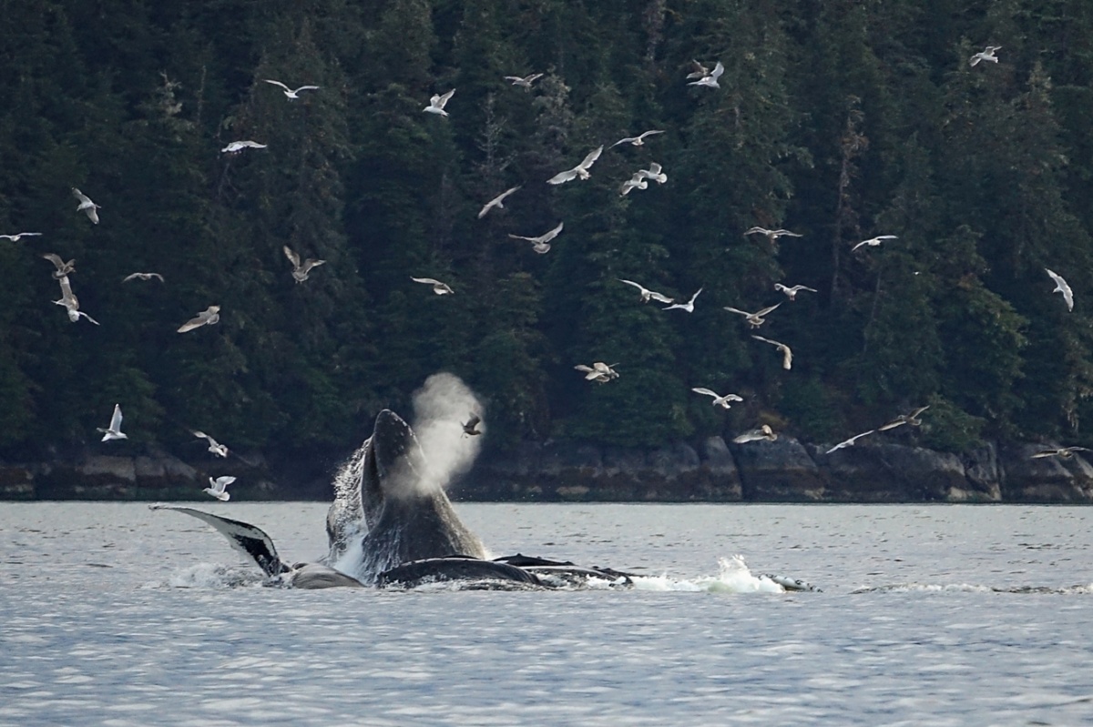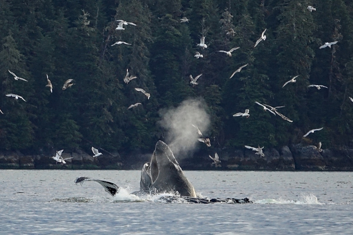 Pozorovat velryby je úžasný zážitek, obzvlášť když poprvé v životě sleduji jejich styl lovu, kdy se vynořují s otevřenou tlamou, do které nabírají desítky kilogramů ryb.